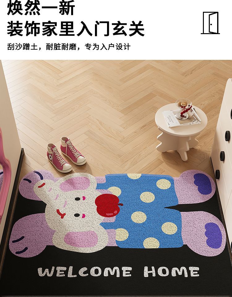 바닥 매트 입장 문 더러운 저항 만화 쉬운 실크 링 바닥 매트 홈 입장 문 스크래핑 진흙 문지름 착용 방지 미끄럼 방지 바닥 매트스토어 가기