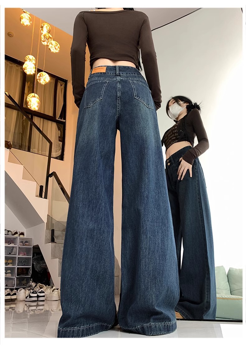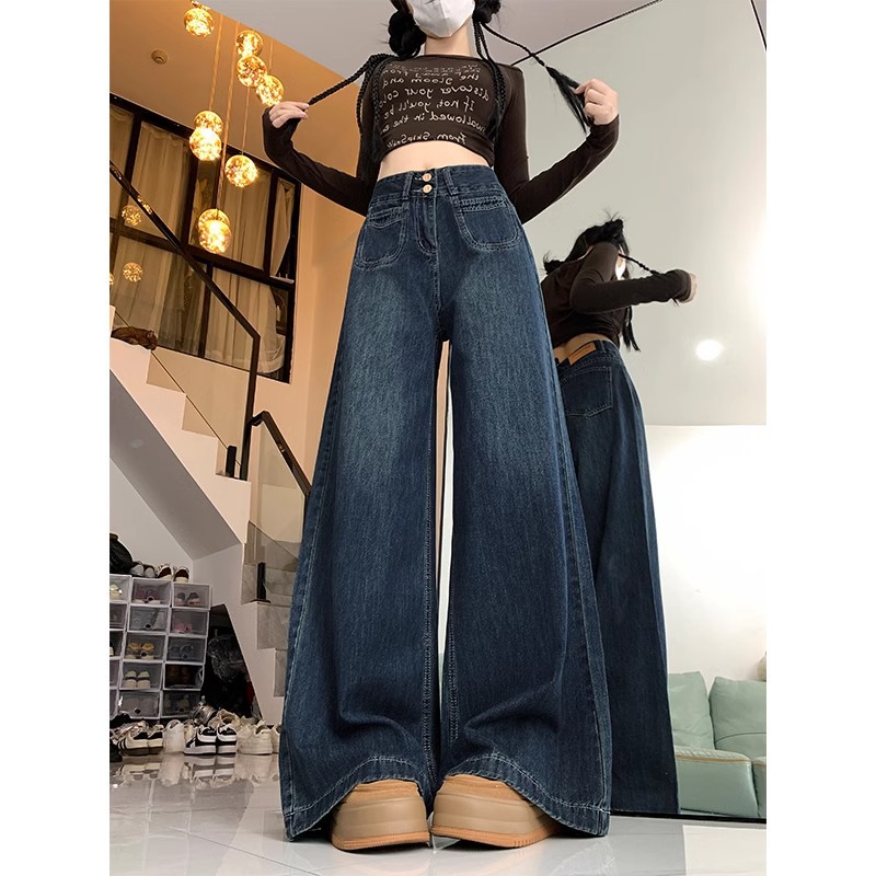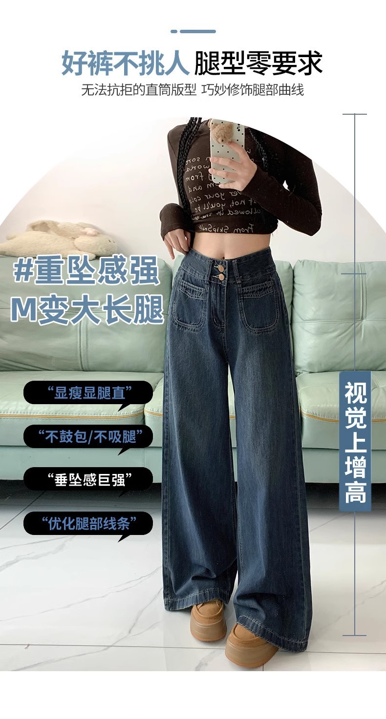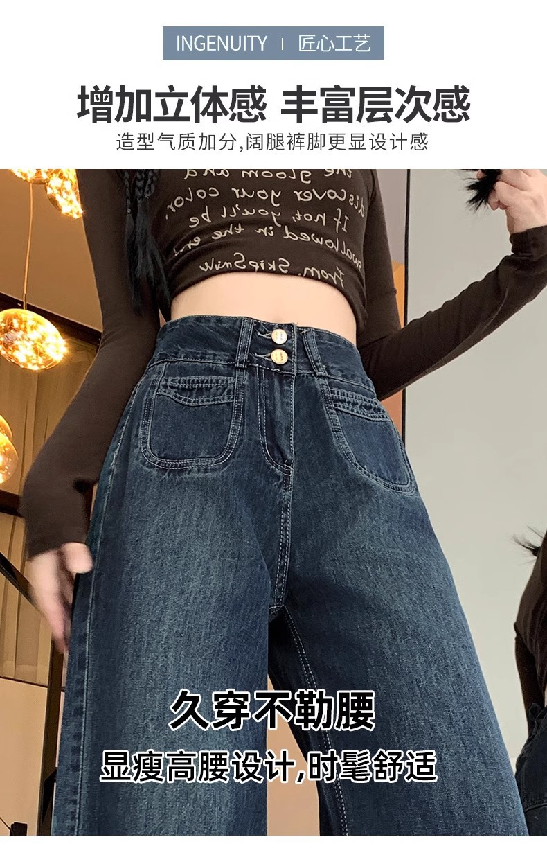 청바지 여성의 가을과 겨울 2024 새로운 기모 높은 허리 슬리밍 스트레이트 튜브 플러스 사이즈 바닥 모핑 느슨한 넓은 다리 바지스토어 가기