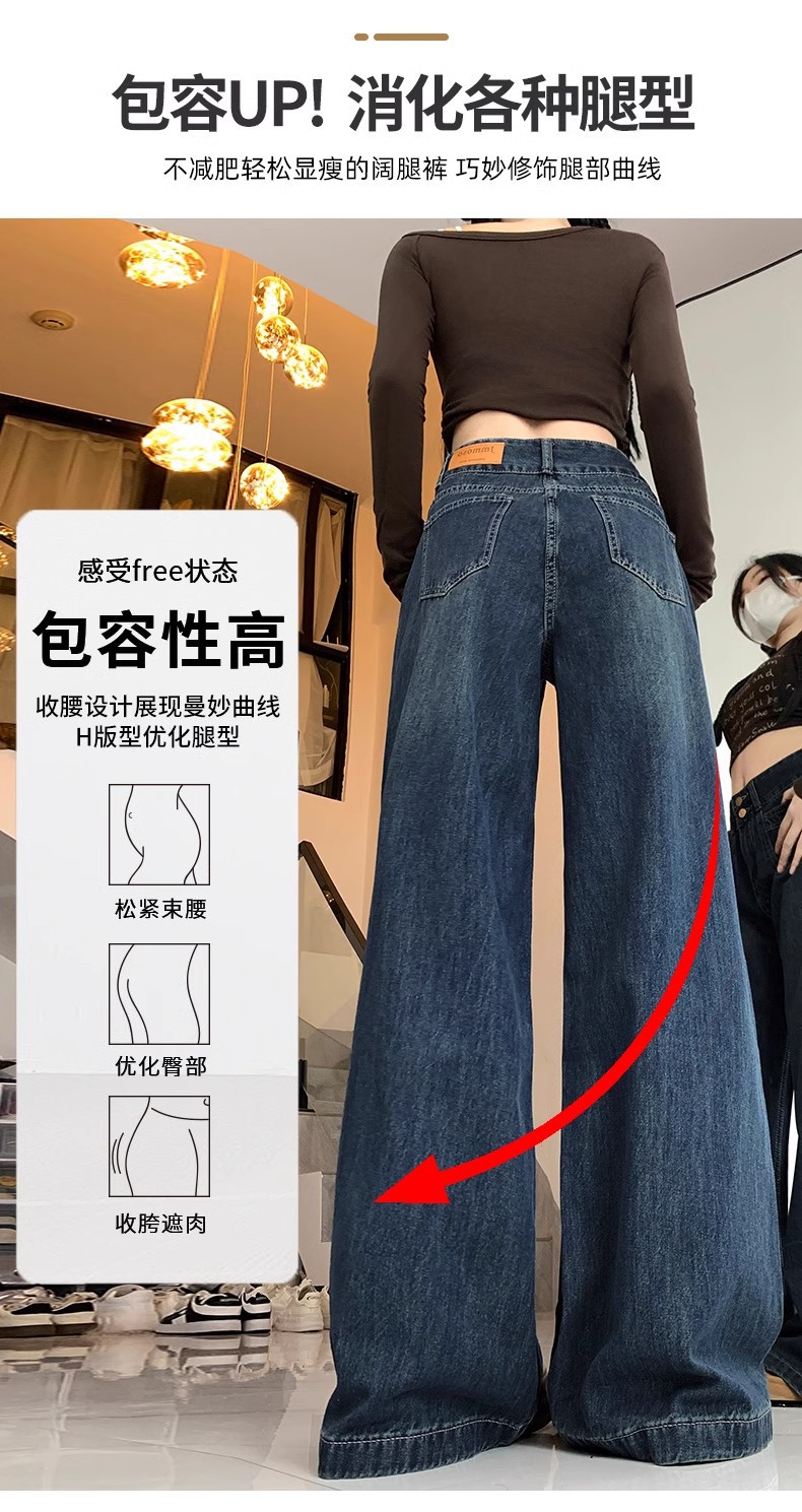 청바지 여성의 가을과 겨울 2024 새로운 기모 높은 허리 슬리밍 스트레이트 튜브 플러스 사이즈 바닥 모핑 느슨한 넓은 다리 바지