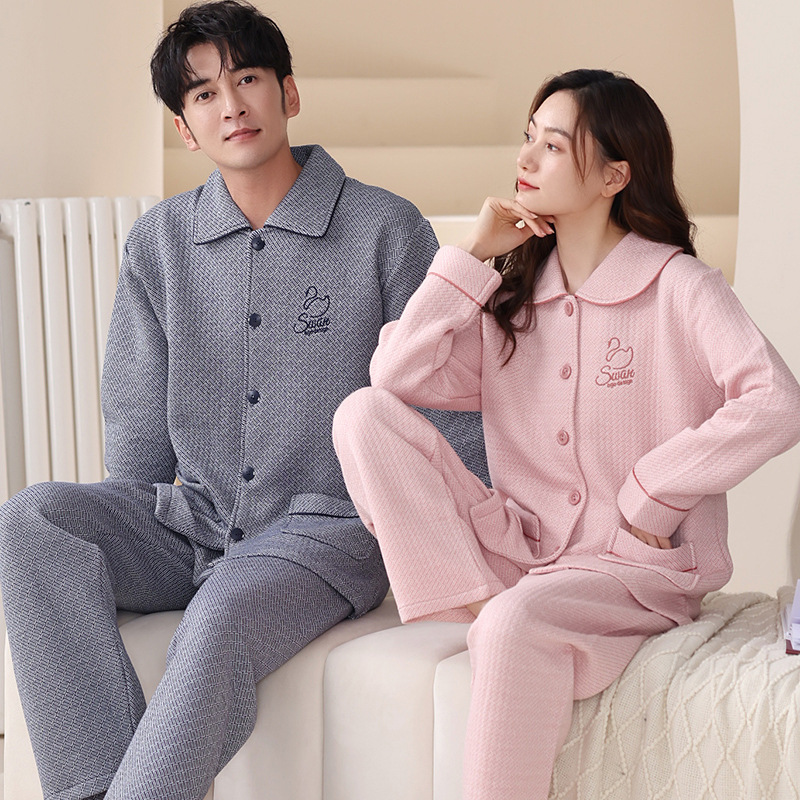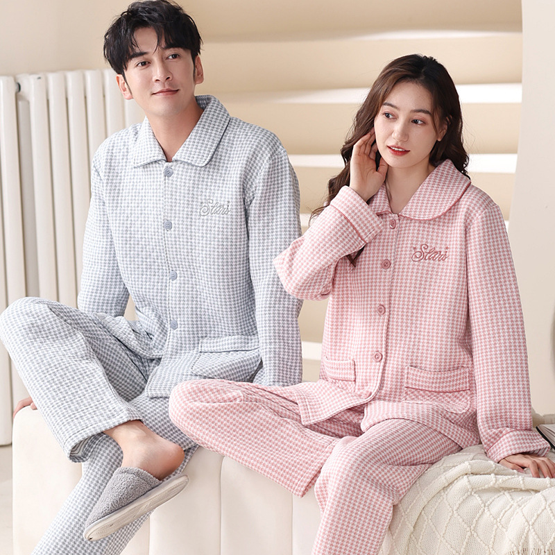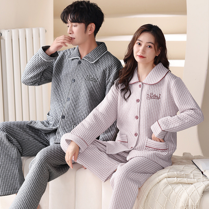 [팩토리 아울렛} 커플 잠옷 가을과 겨울 공기 면 두꺼운 따뜻한 남자와 여자의 얇은 면 따뜻한 집 옷스토어 가기