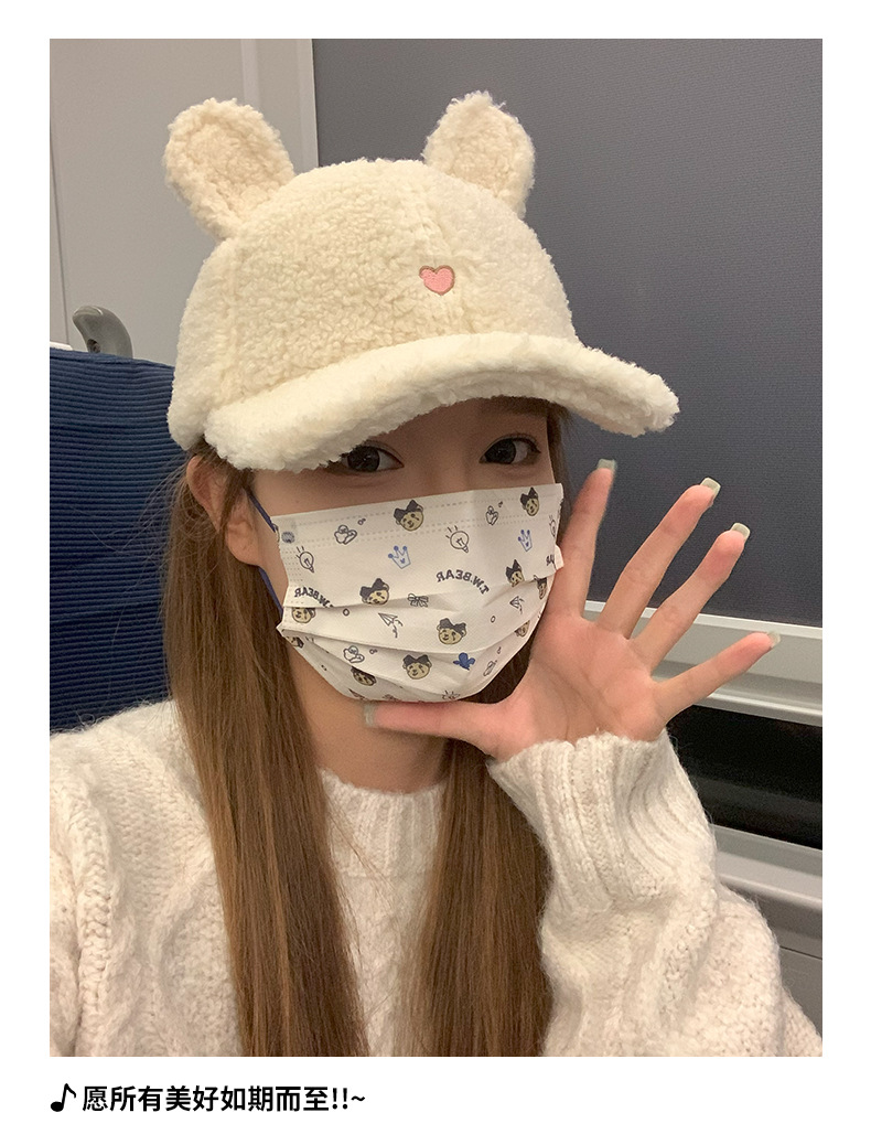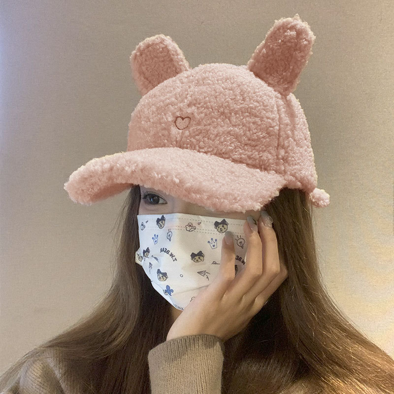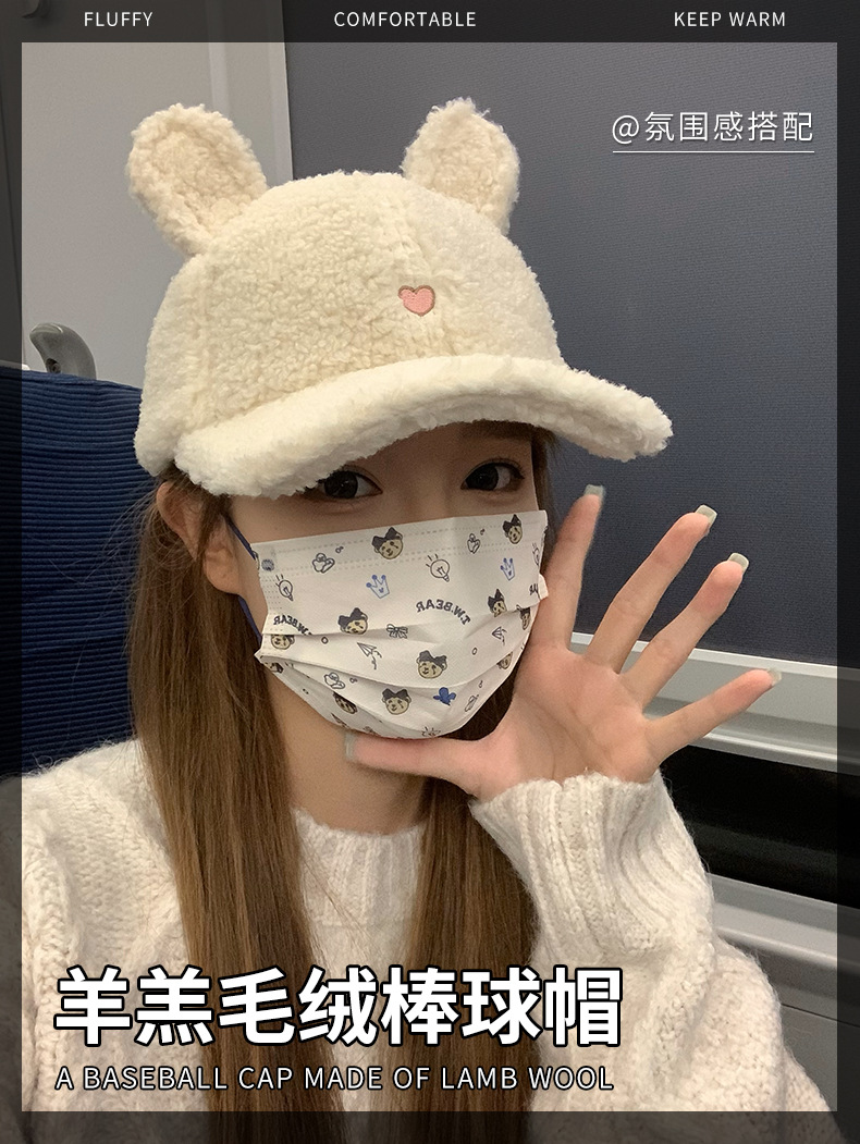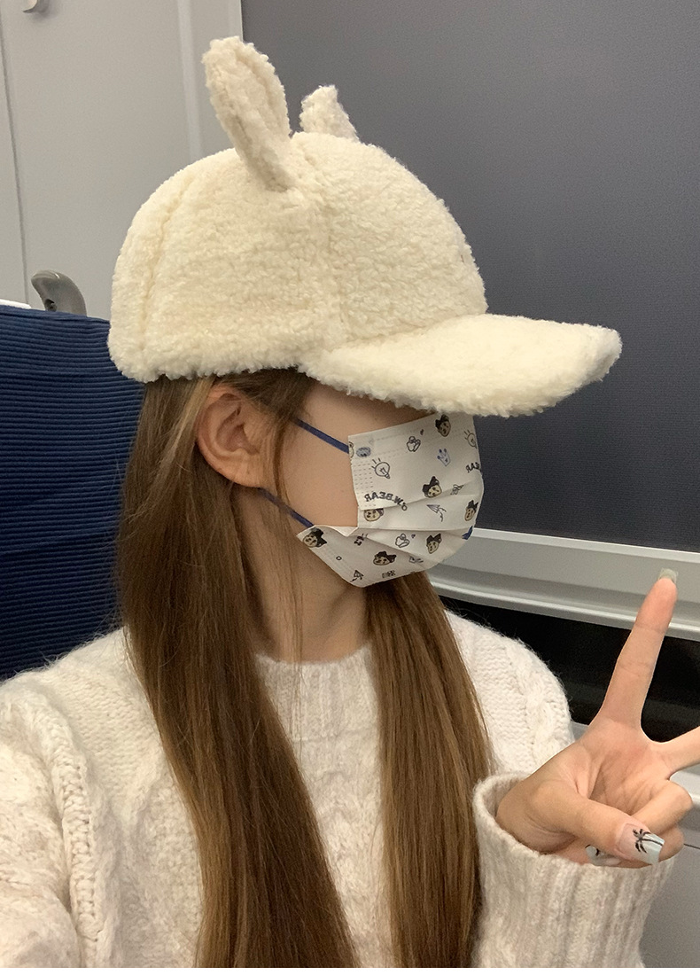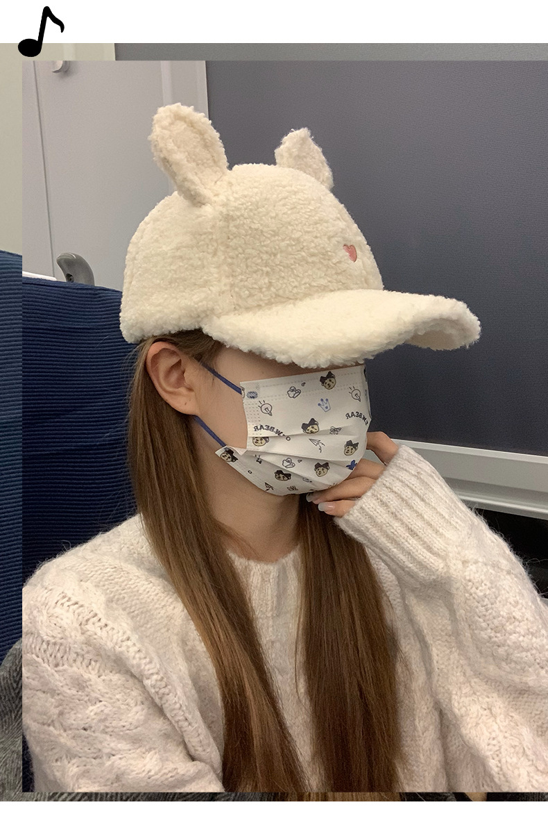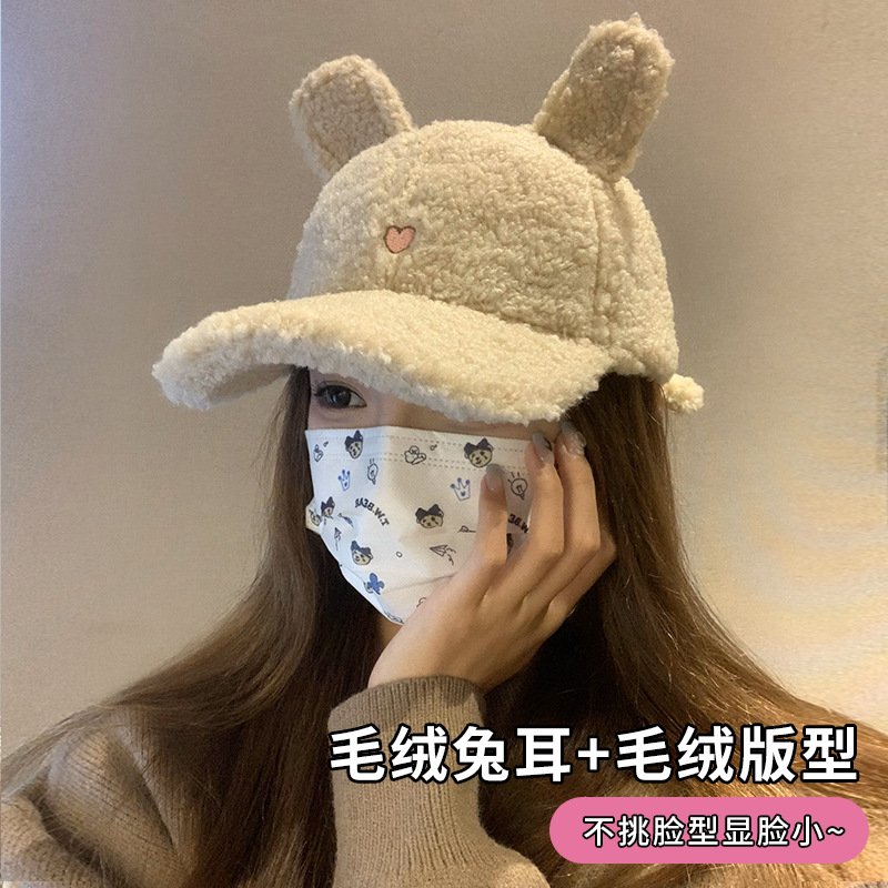 야구 모자 어린이 2024 가을 겨울 얼굴 작은 모든 경기 따뜻한 귀여운 양고기 봉제 토끼 귀 모자스토어 가기