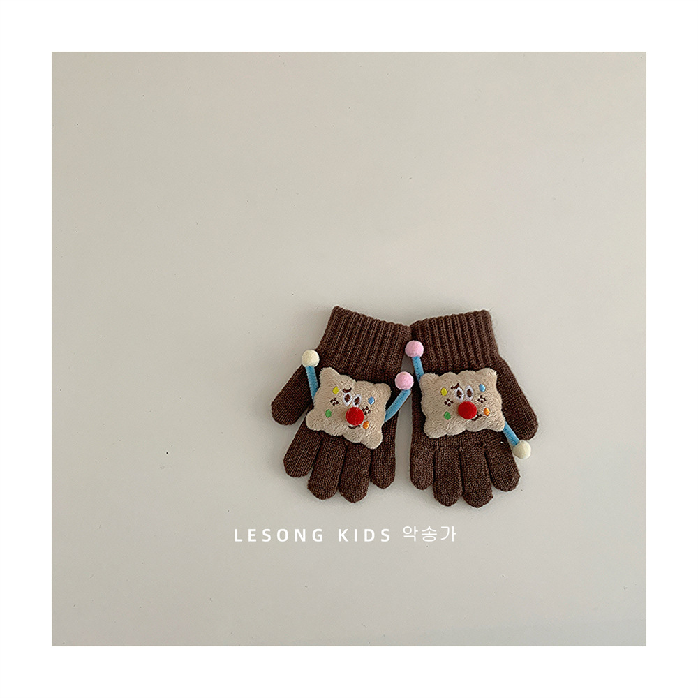 2024 년 새로운 어린이 장갑 가을과 겨울 한국 비스킷 소년 소녀 손가락 따뜻한 니트 장갑 트렌디스토어 가기