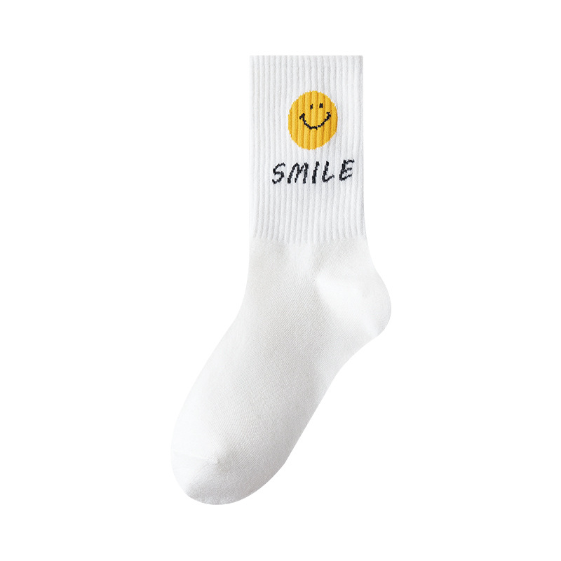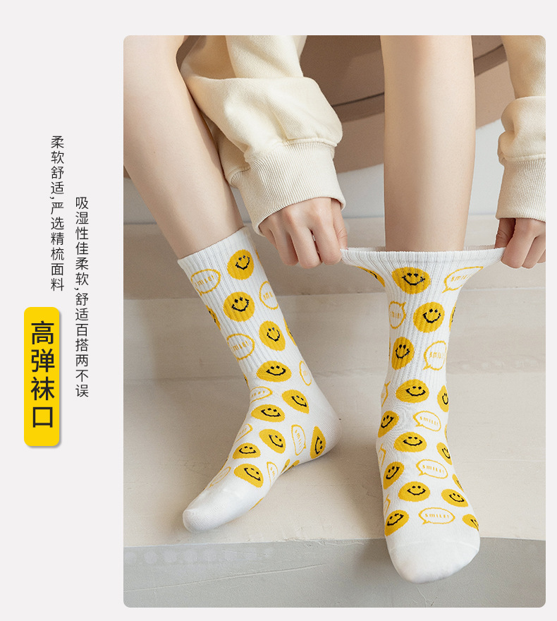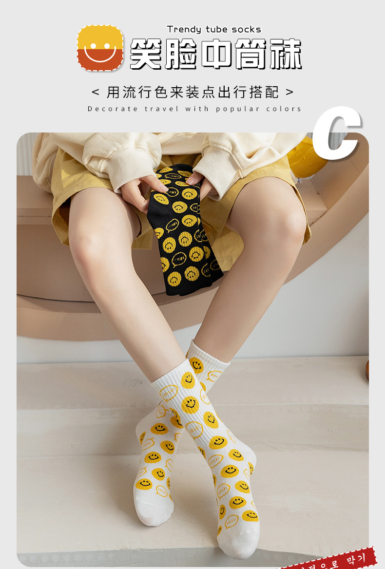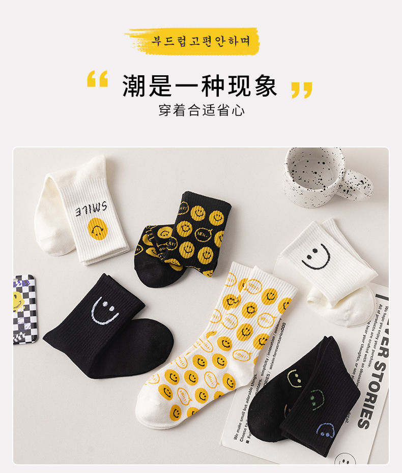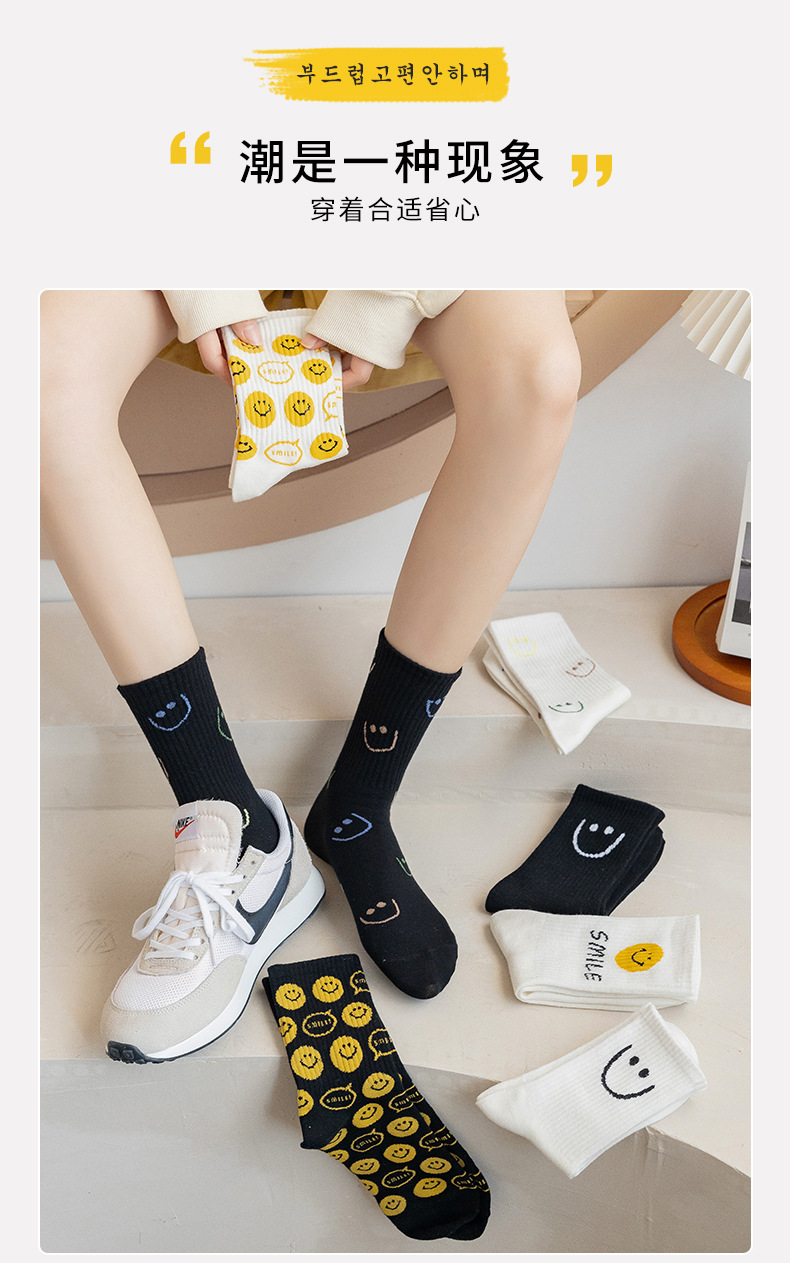 한국 스타일 스마일 중목 양말 여성용 봄 가을 통기성 땀 흡수 트렌디 2025 신상품 도매 주지이 원산지 공장