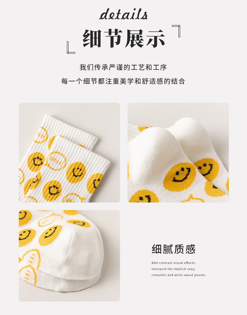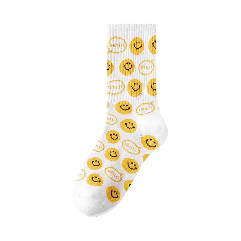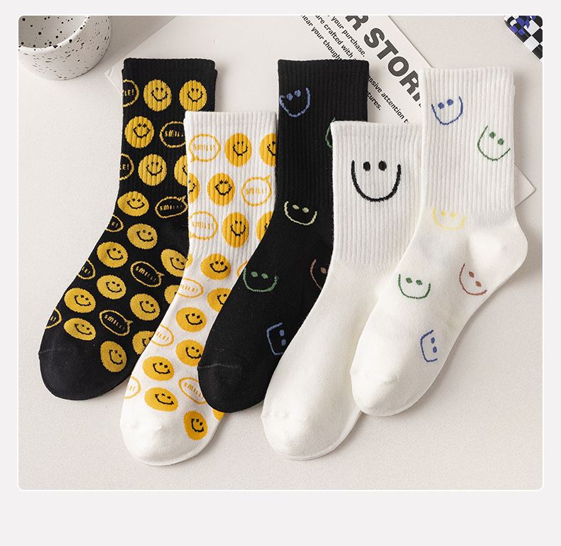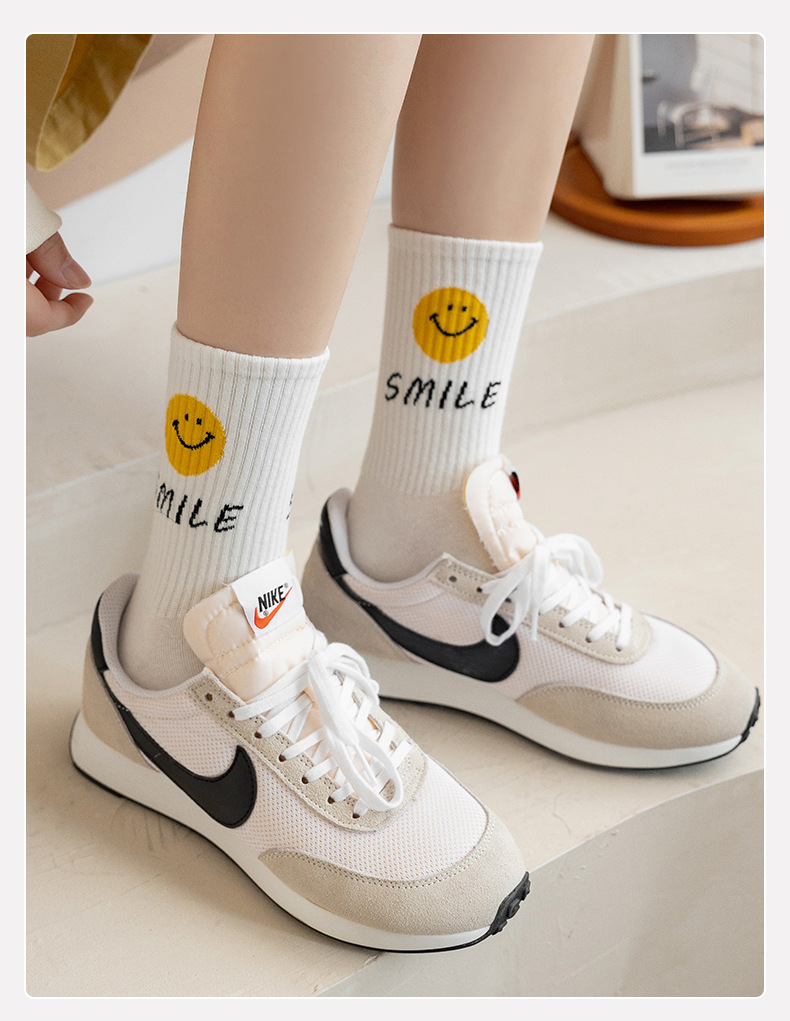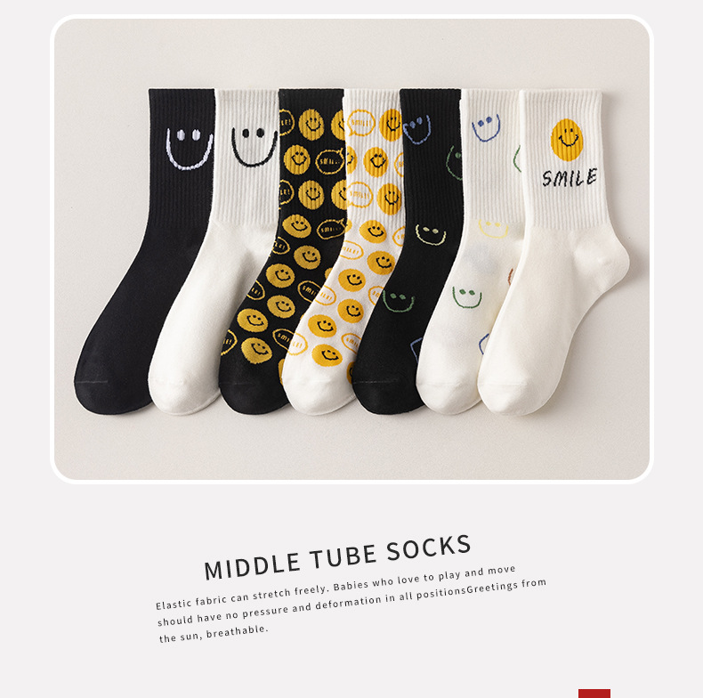 한국 스타일 스마일 중목 양말 여성용 봄 가을 통기성 땀 흡수 트렌디 2025 신상품 도매 주지이 원산지 공장