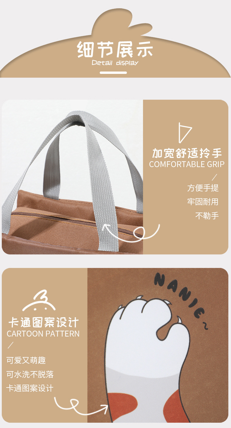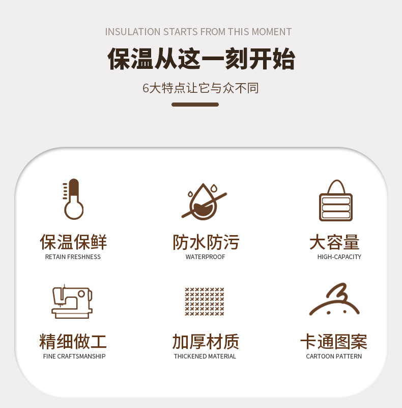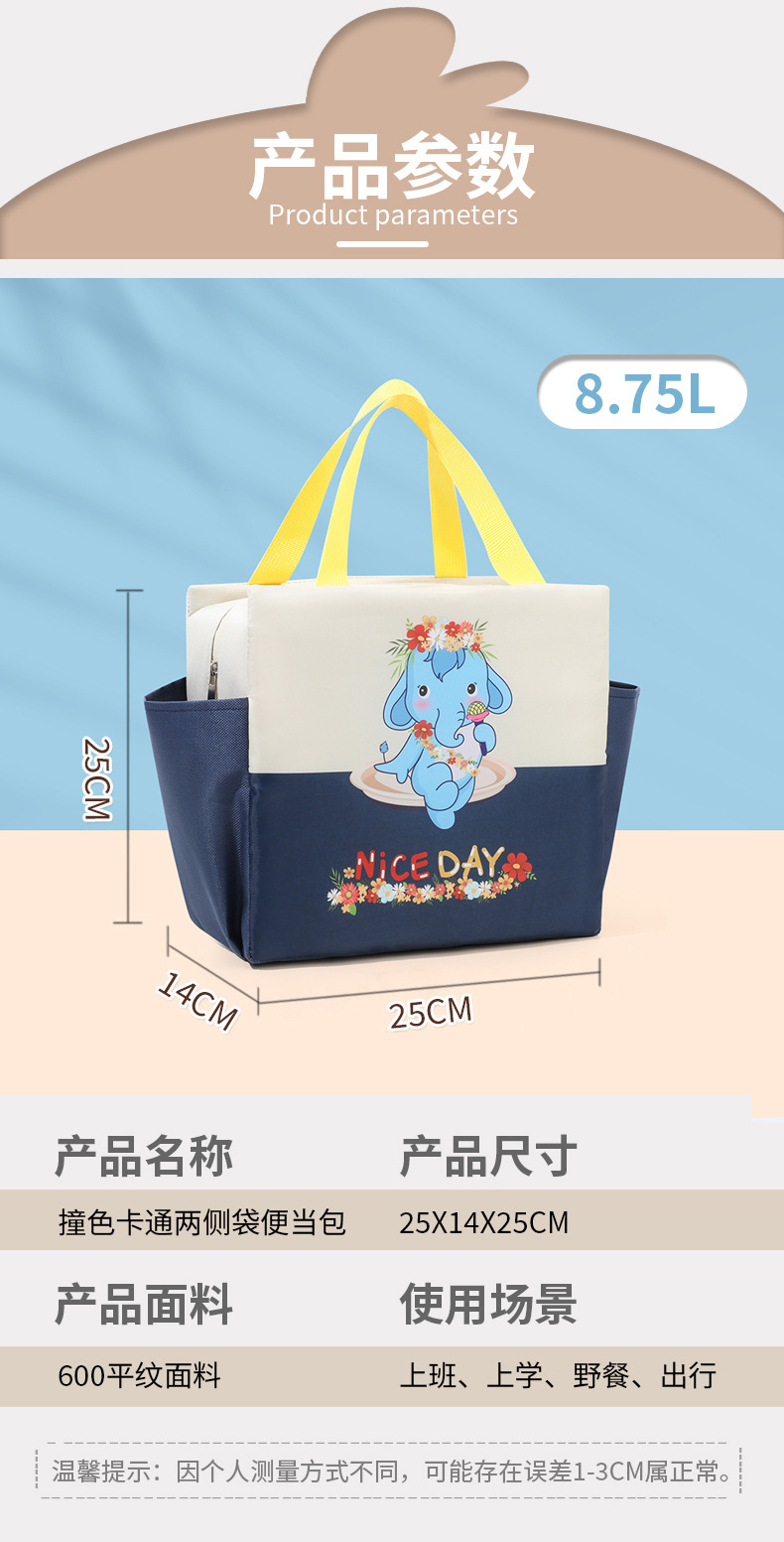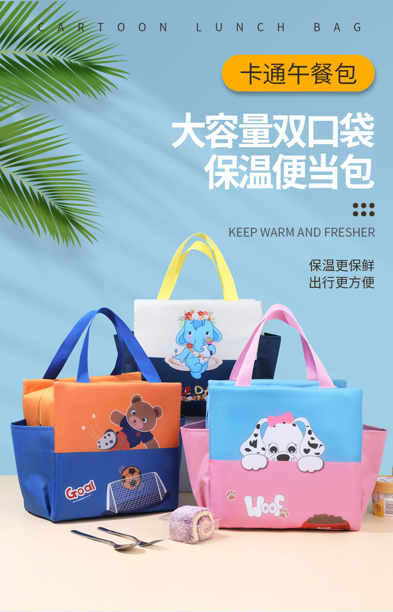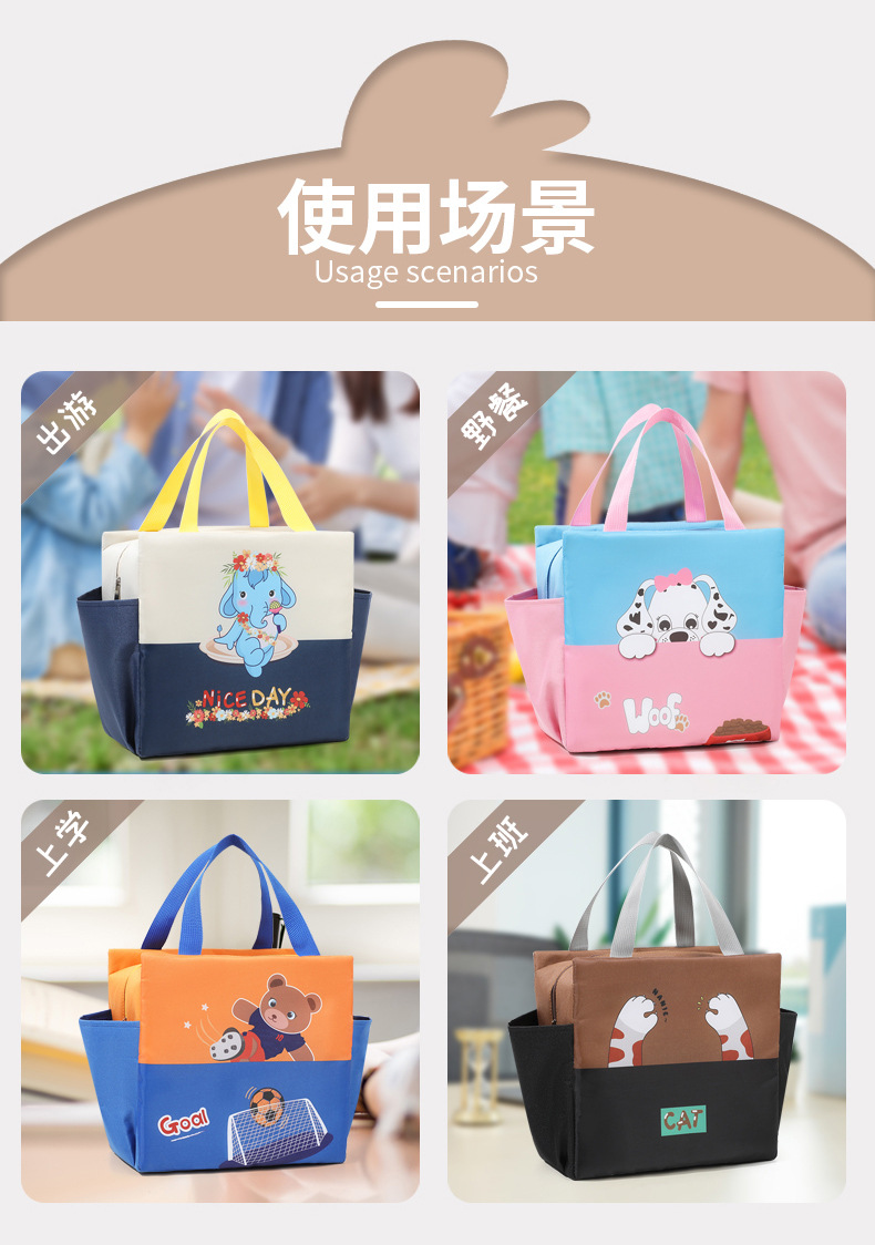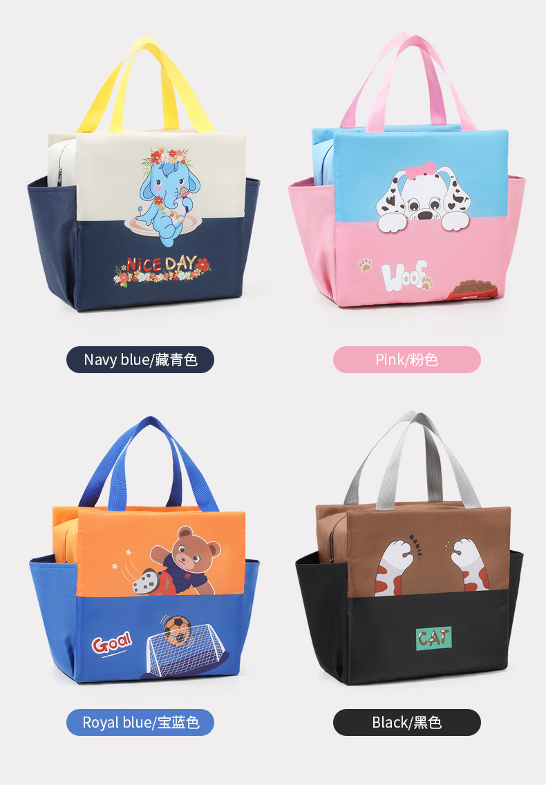 새로운 더블 포켓 휴대용 절연 가방 사각형 색상 일치 만화 도시락 가방 대용량 점심 가방 국경 간 대외 무역 폭발