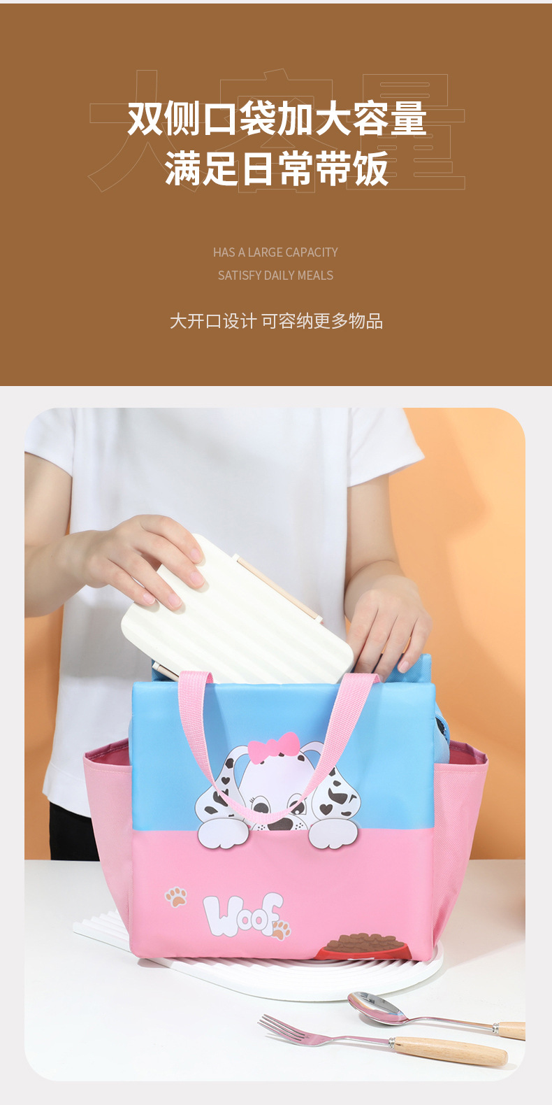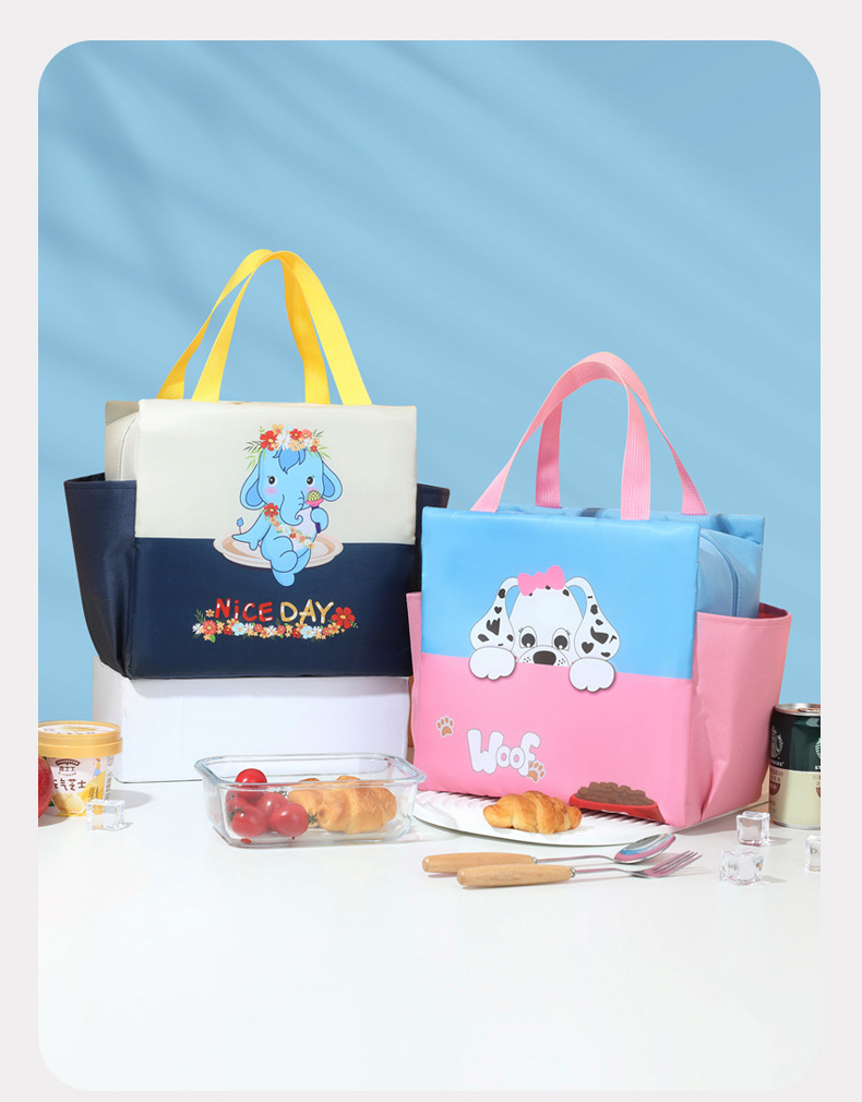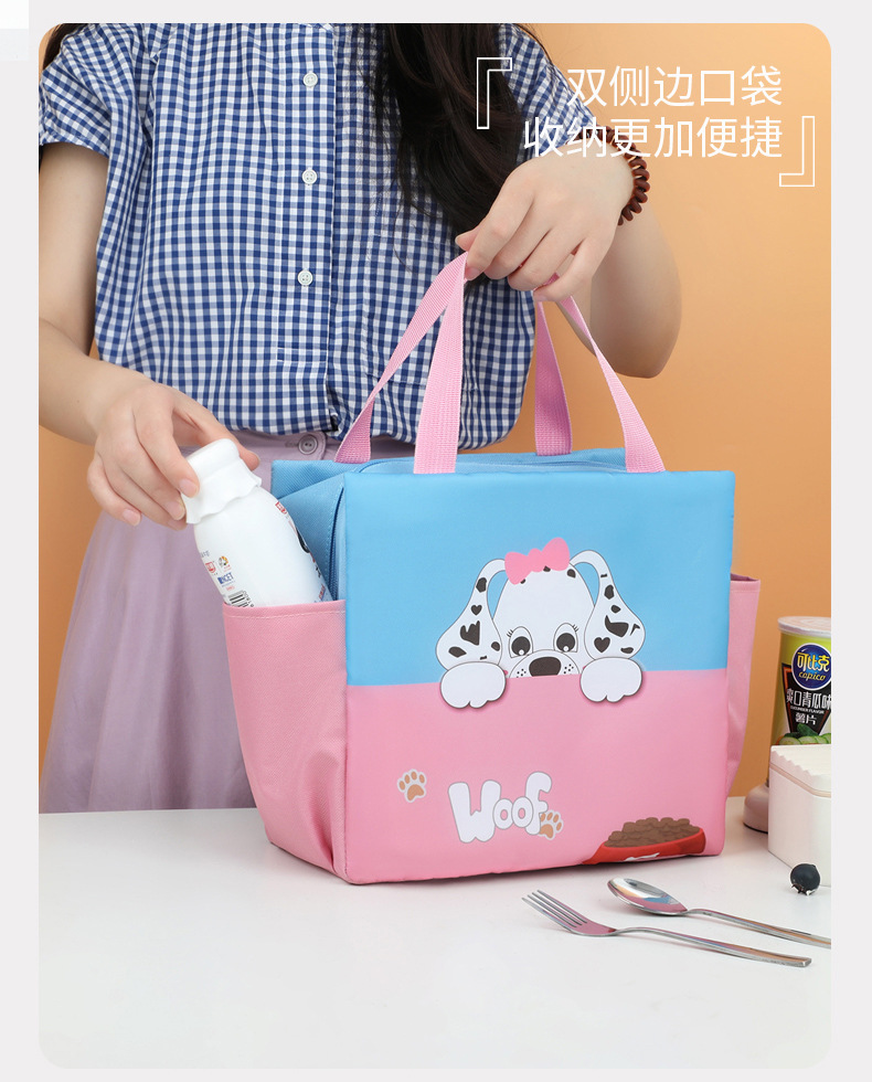 새로운 더블 포켓 휴대용 절연 가방 사각형 색상 일치 만화 도시락 가방 대용량 점심 가방 국경 간 대외 무역 폭발스토어 가기