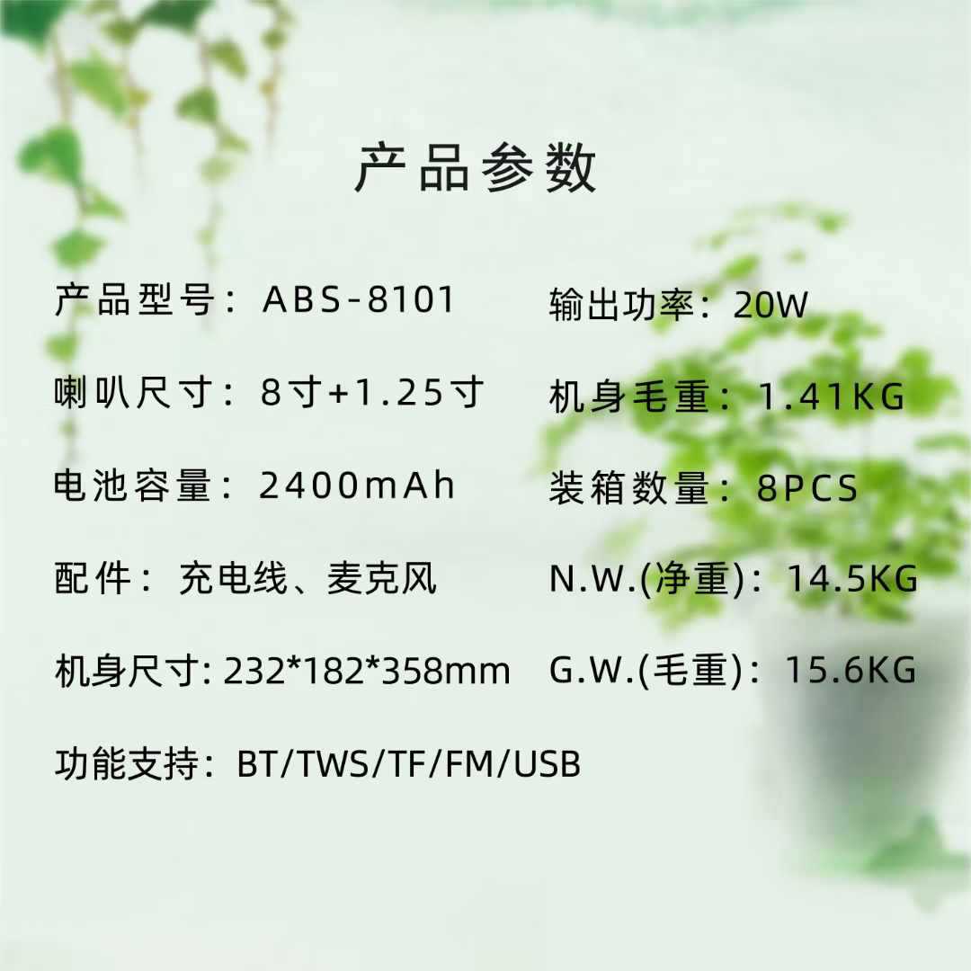 喇叭规格:8寸+高音