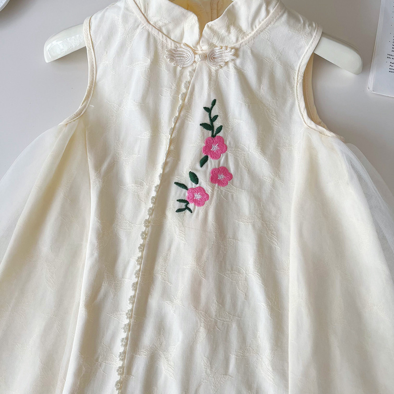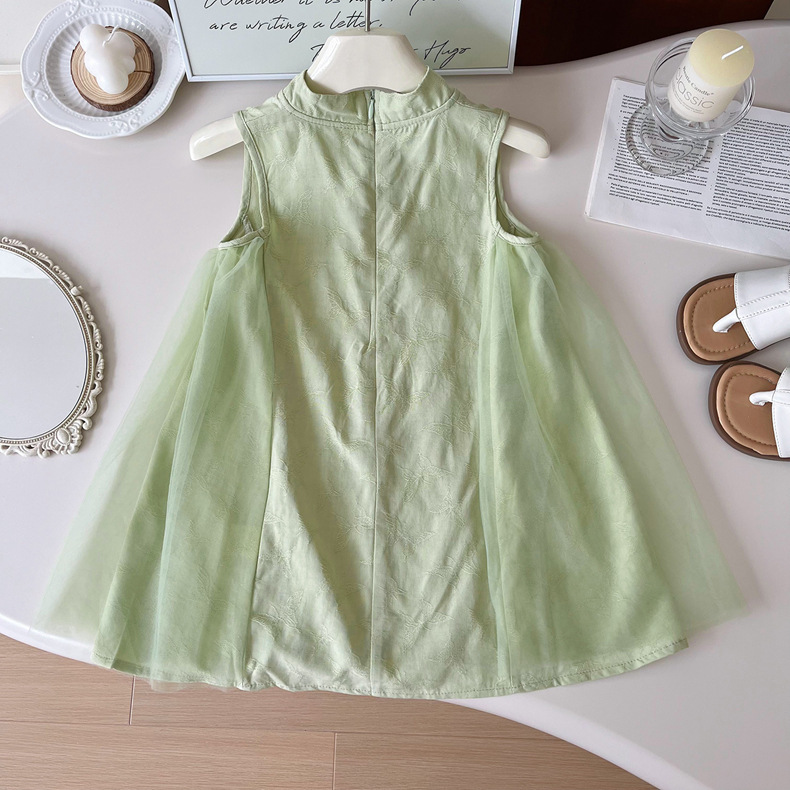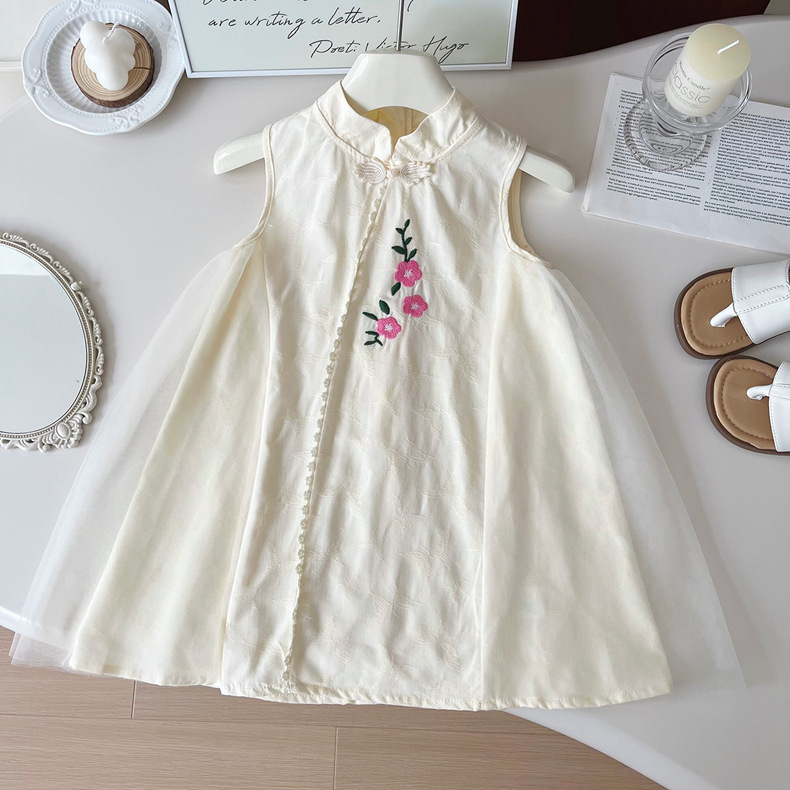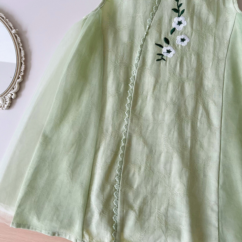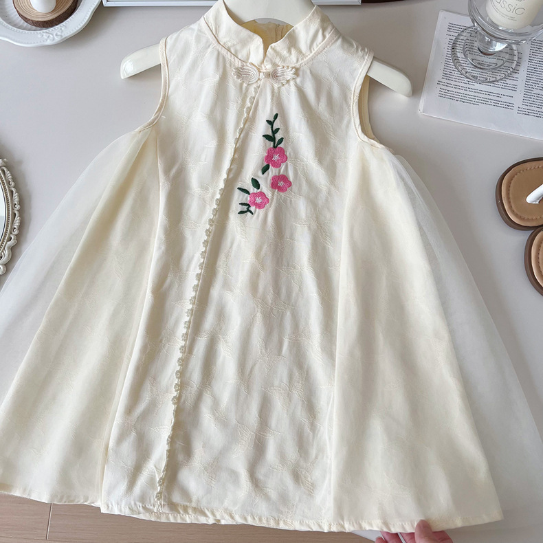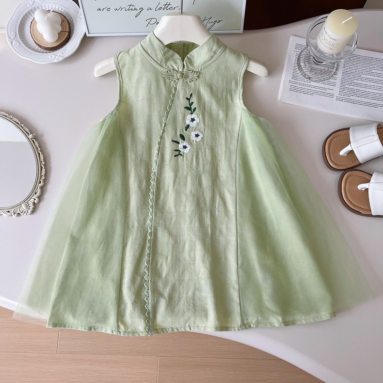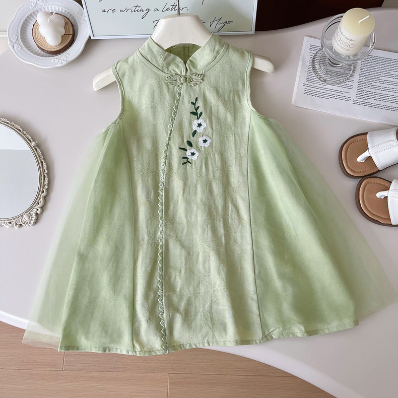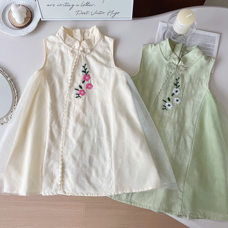 여자 청삼 원피스 여름 새로운 스타일 어린이 국가 스타일 자수 한푸 새로운 중국 스타일 민소매 Vall 원피스 트렌디
