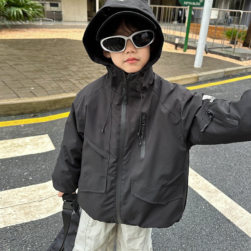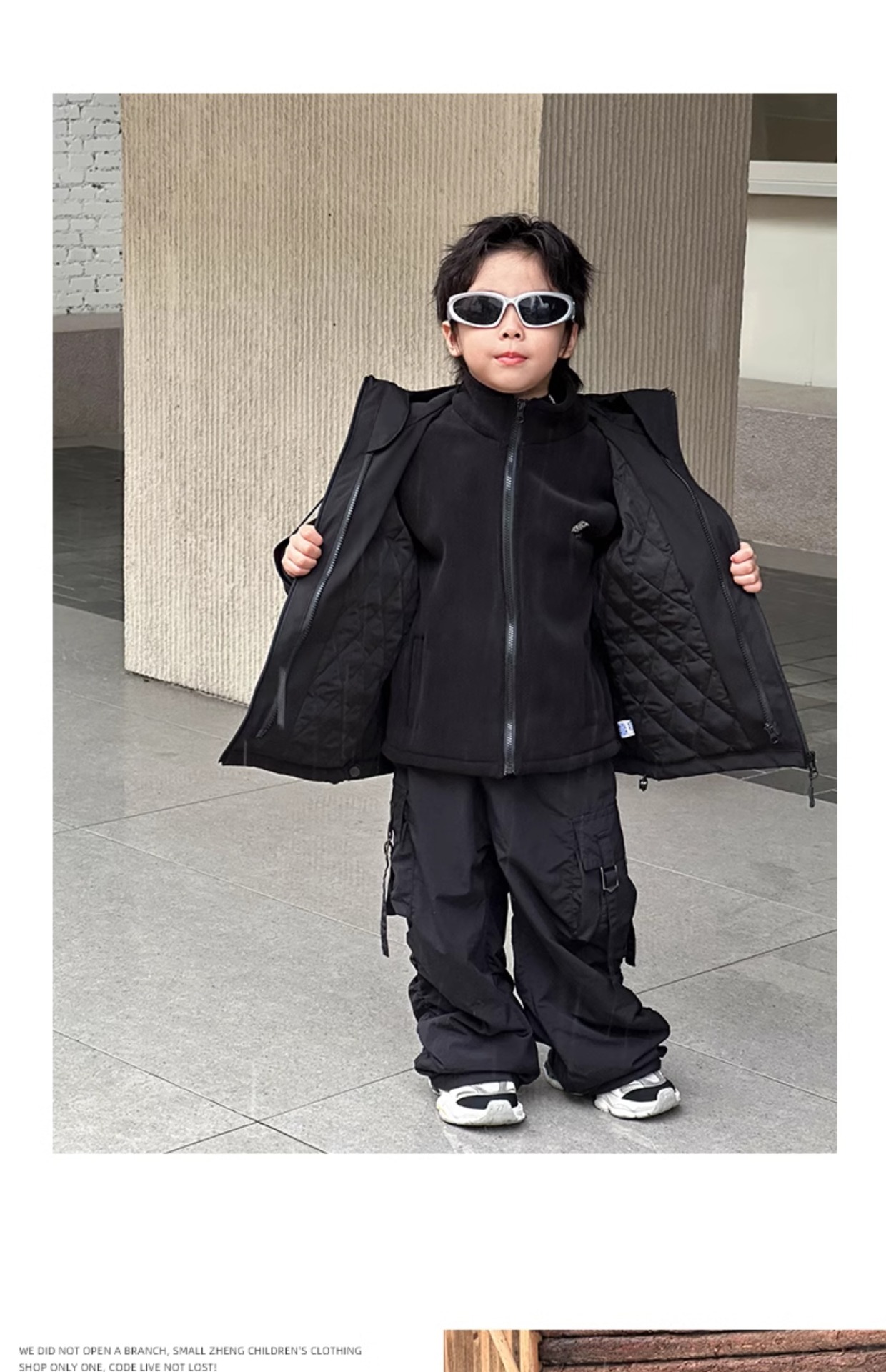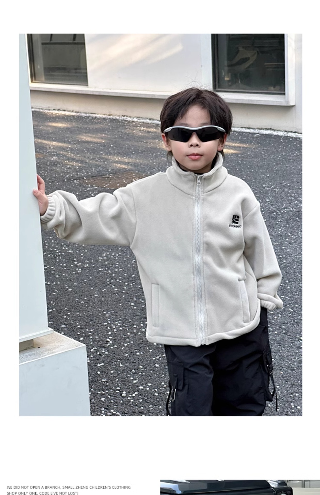 소년 한국 스타일 재킷 2024 겨울 새로운 어린이 유행 기모 재킷 어린이 느슨한 두꺼운 탑스토어 가기