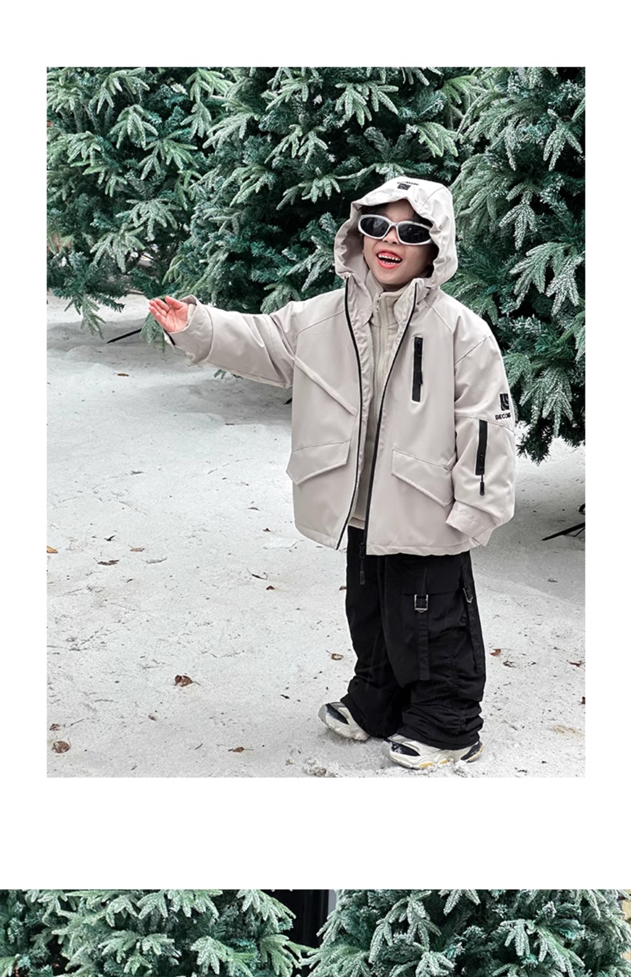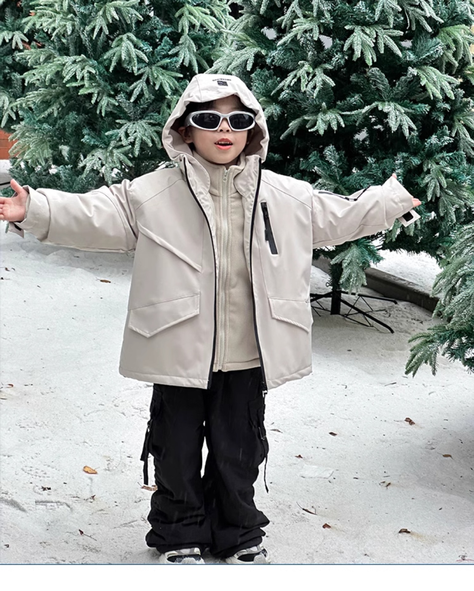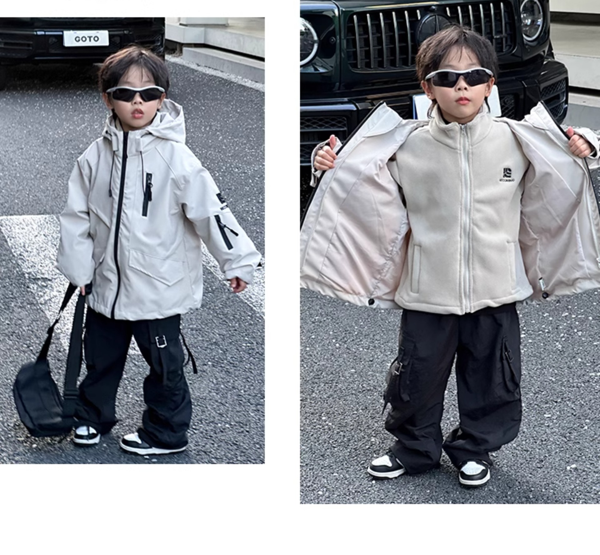 소년 한국 스타일 재킷 2024 겨울 새로운 어린이 유행 기모 재킷 어린이 느슨한 두꺼운 탑스토어 가기