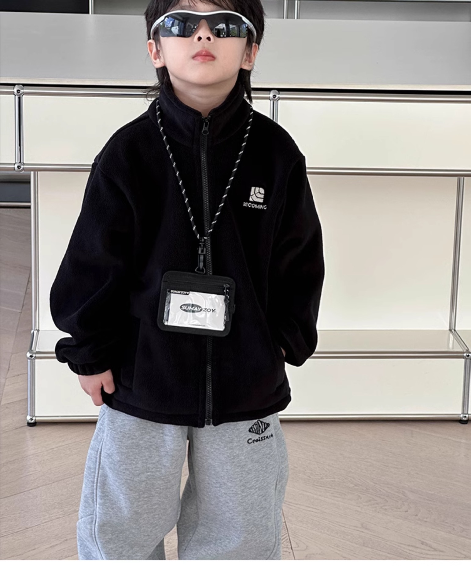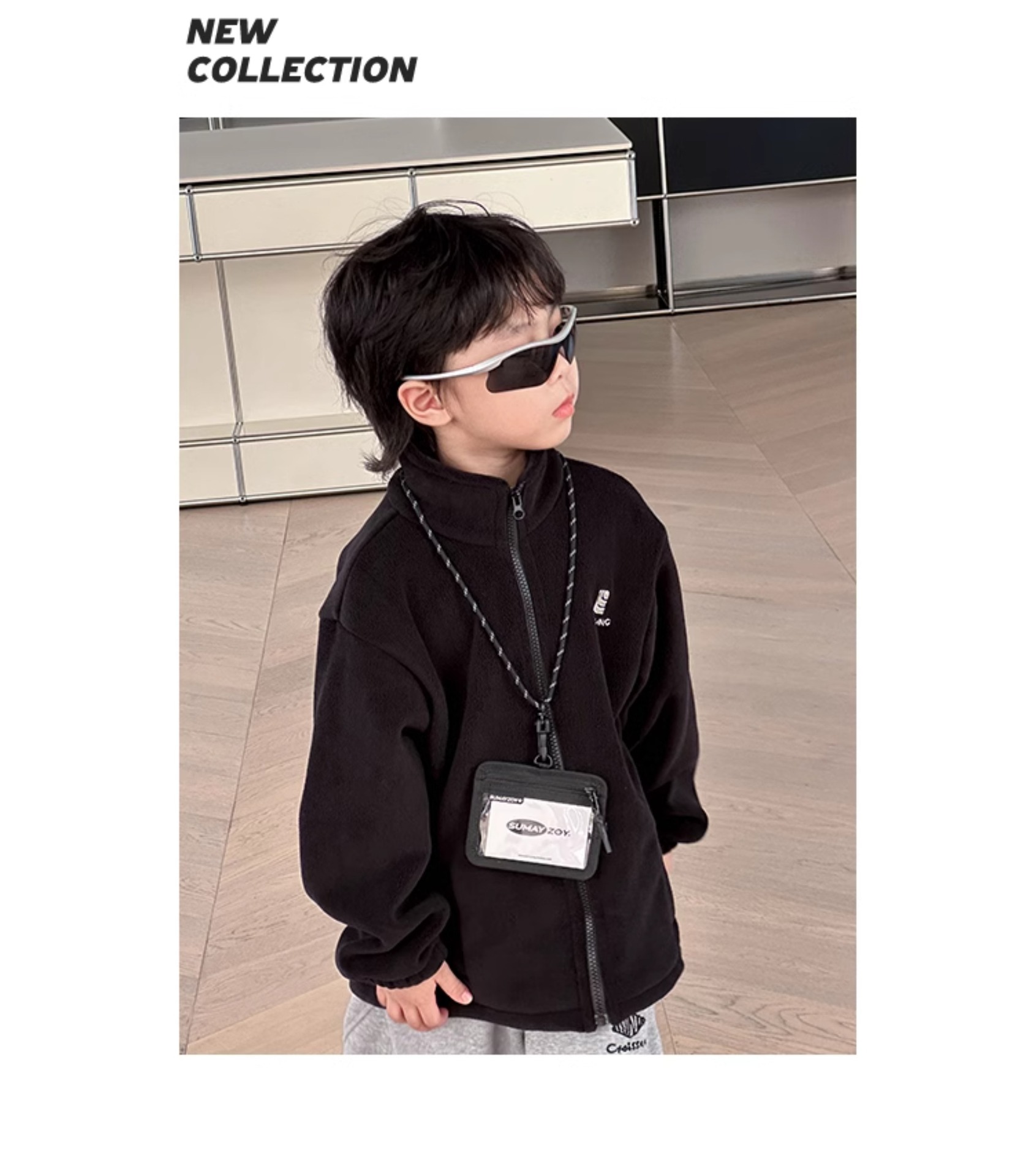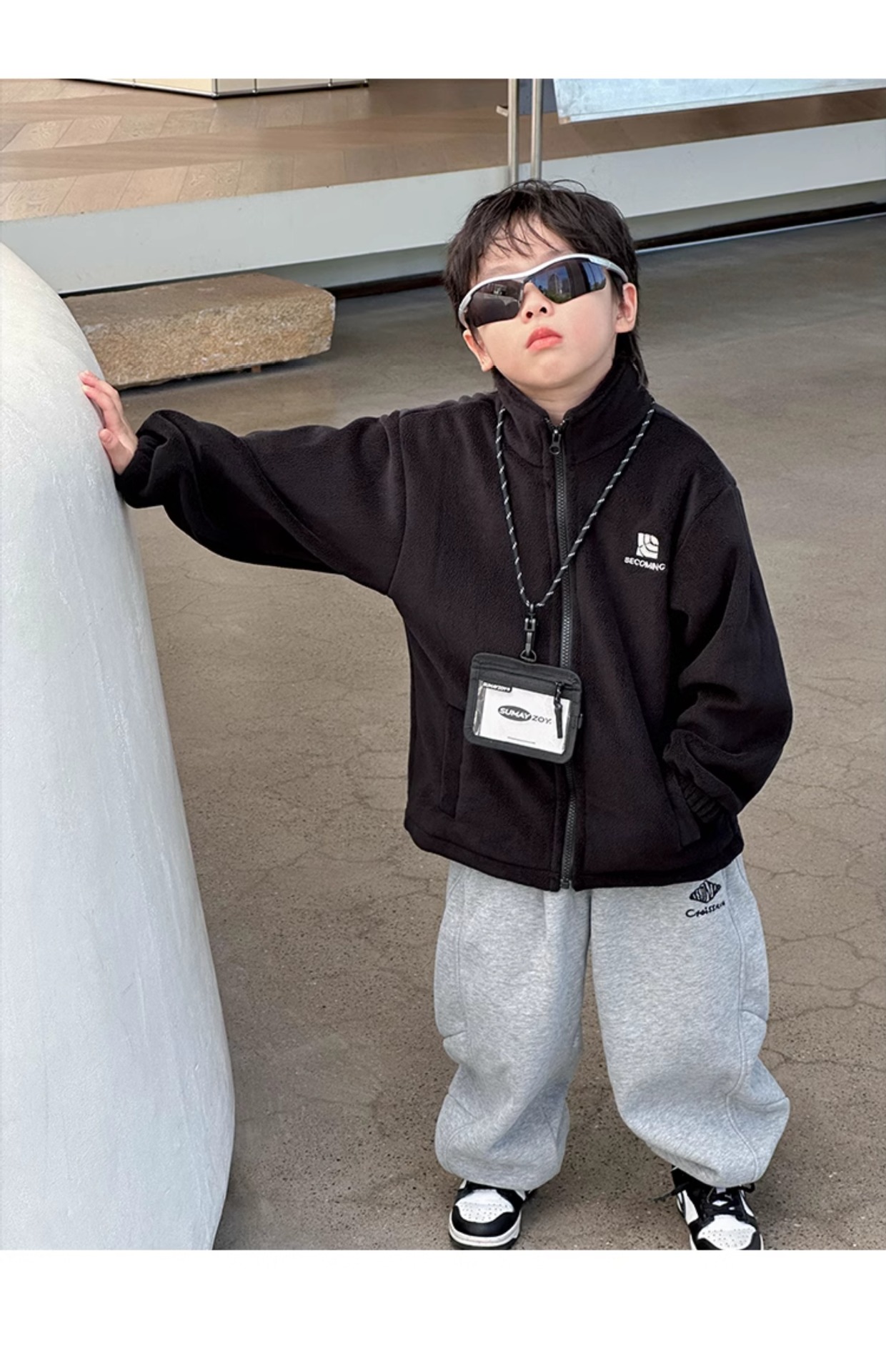 소년 한국 스타일 재킷 2024 겨울 새로운 어린이 유행 기모 재킷 어린이 느슨한 두꺼운 탑