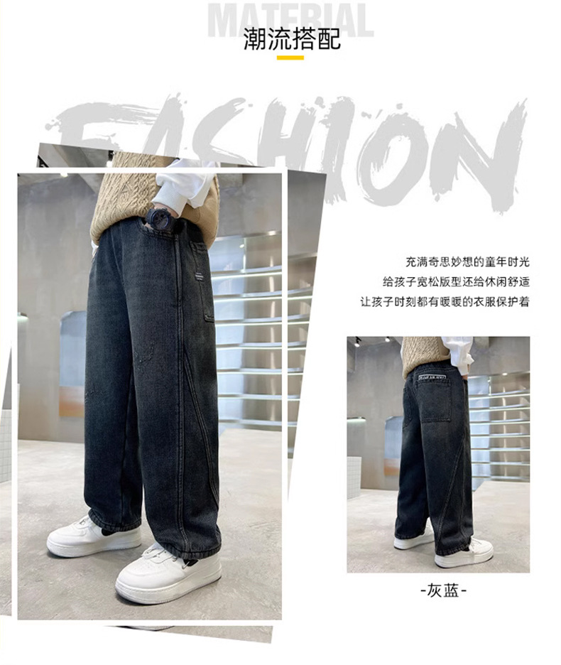 남아용 데님 팬츠, 중대형 아동용 루즈핏 스트레이트 팬츠, 봄 가을용 아동 와이드 팬츠, 남아용 스포츠 기모 바지스토어 가기