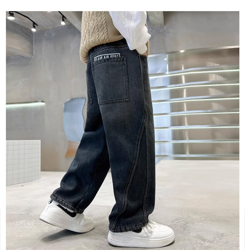 남아용 데님 팬츠, 중대형 아동용 루즈핏 스트레이트 팬츠, 봄 가을용 아동 와이드 팬츠, 남아용 스포츠 기모 바지