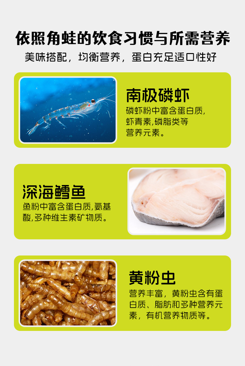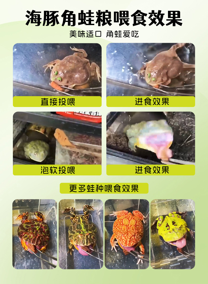 돌고래뿔개구리사료, 애완개구리사료, 황록색 킹스리버개구리사료, 양서류 및 파충류사료, 돌고래뿔개구리 과립사료