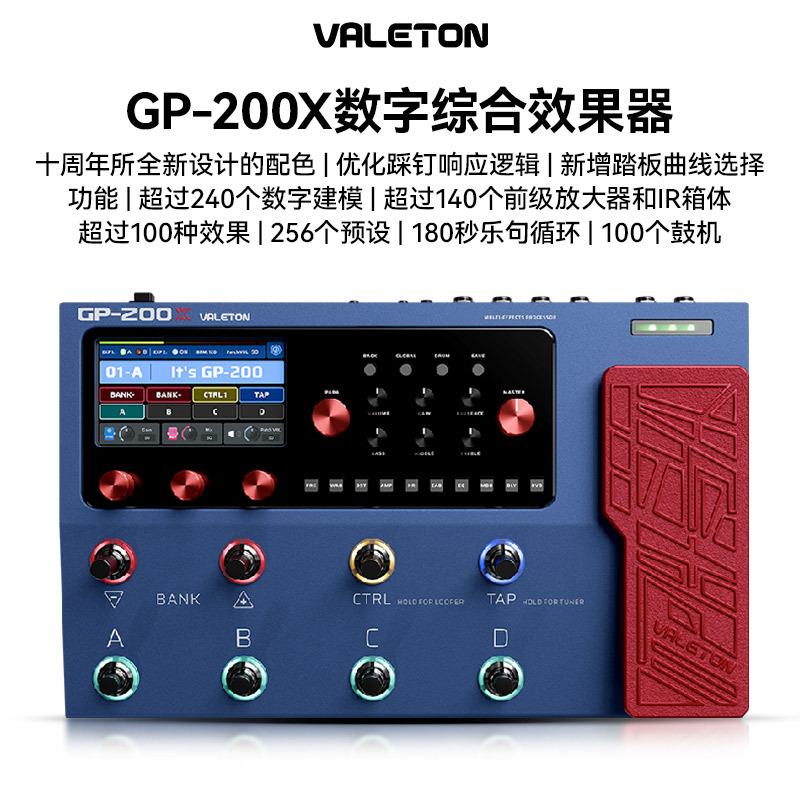 Valeton GP-200X 일렉트릭 기타 종합 효과 장치 베이스 문구 루프 녹음 사운드 카드 드럼 머신 반주