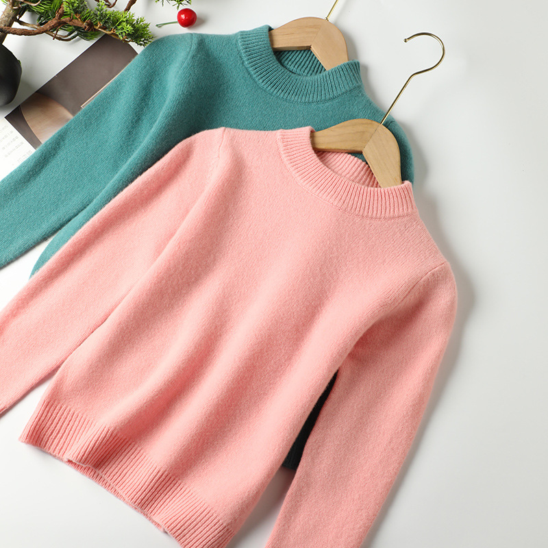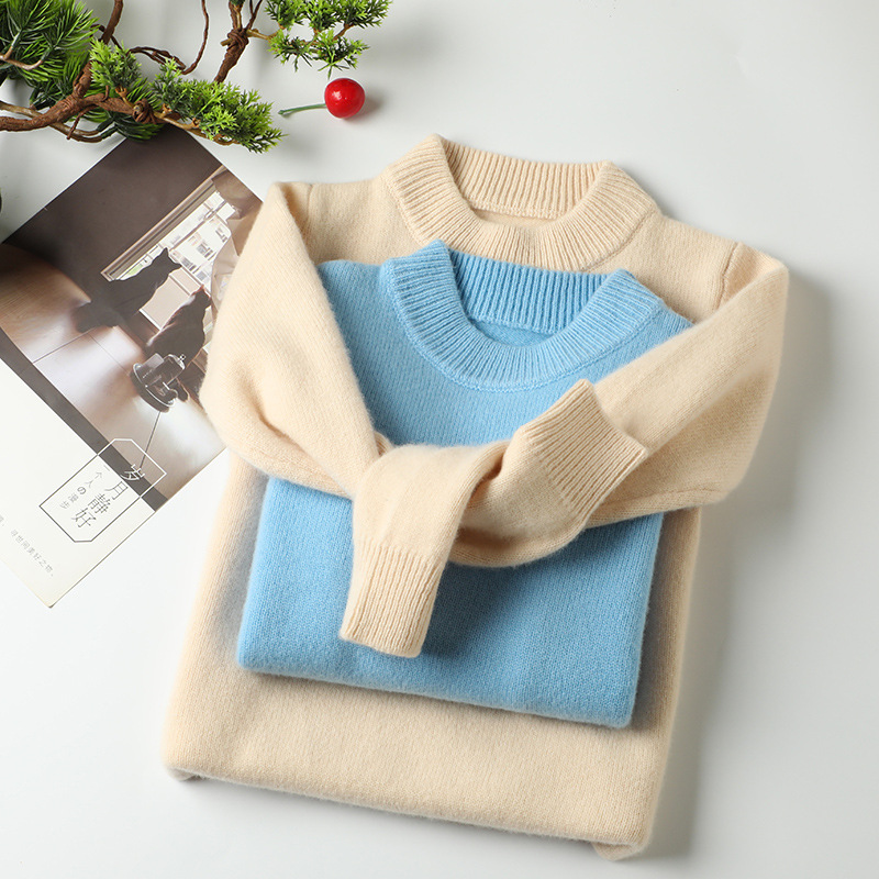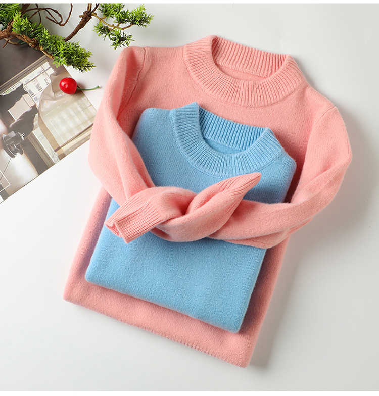 아동복 두꺼운 캐시미어 스웨터 겨울 대형 어린이 소년 및 소녀 스웨터 크루 넥 풀오버 따뜻한 반 높이 칼라 니트 스웨터