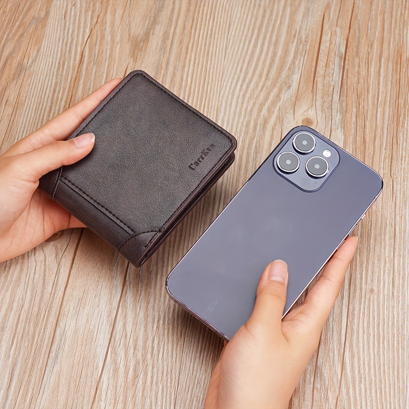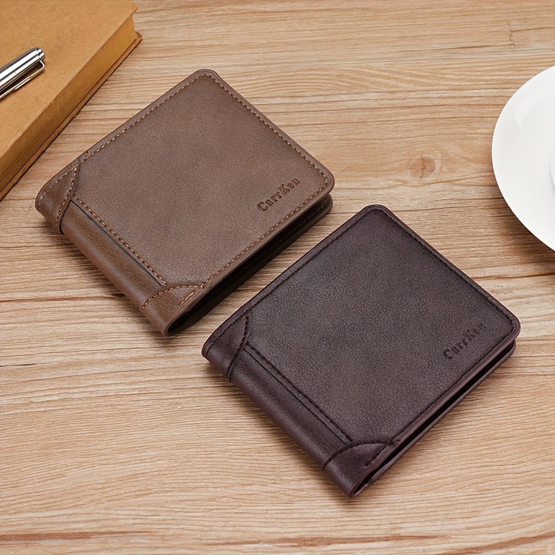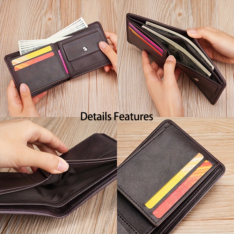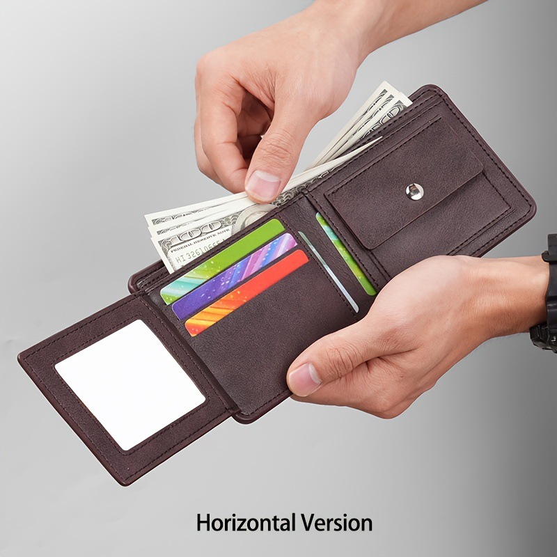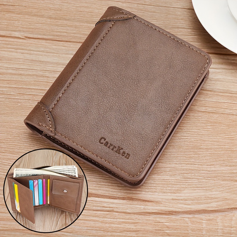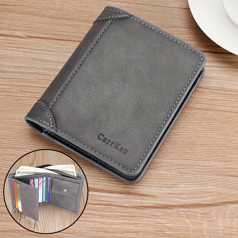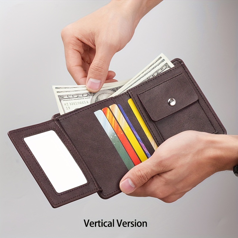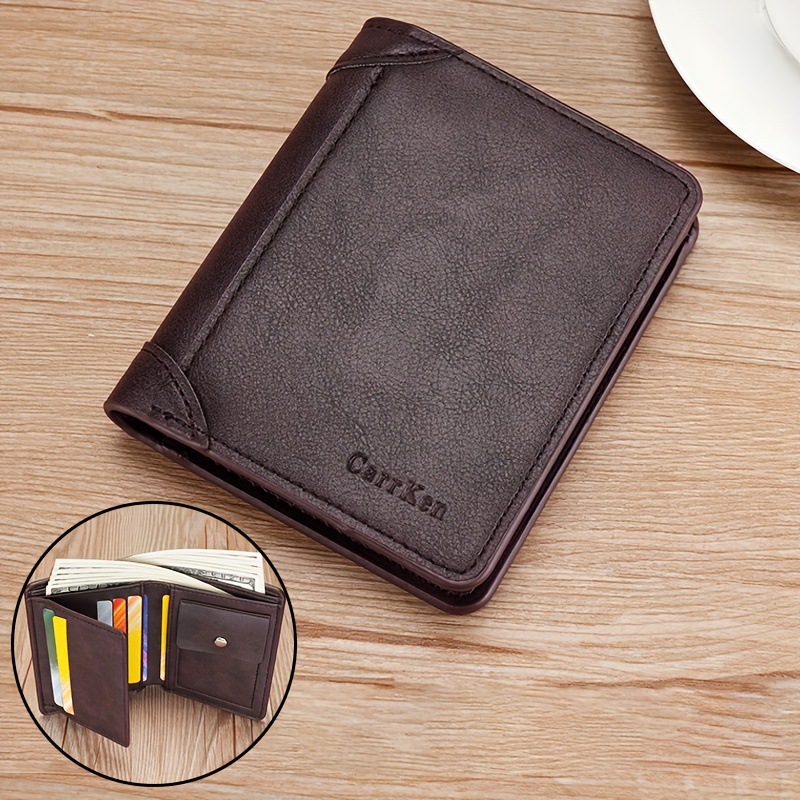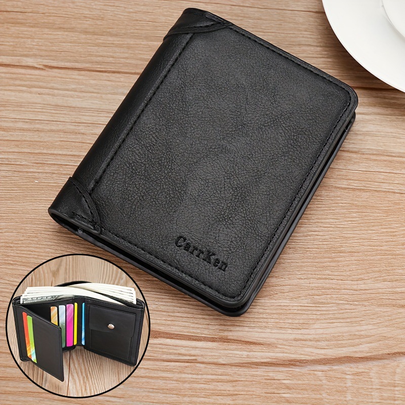새로운 남성 지갑 짧은 빈티지 3 배 다기능 지갑 수직 단색 멀티 카드 홀더 신용 카드 지갑스토어 가기
