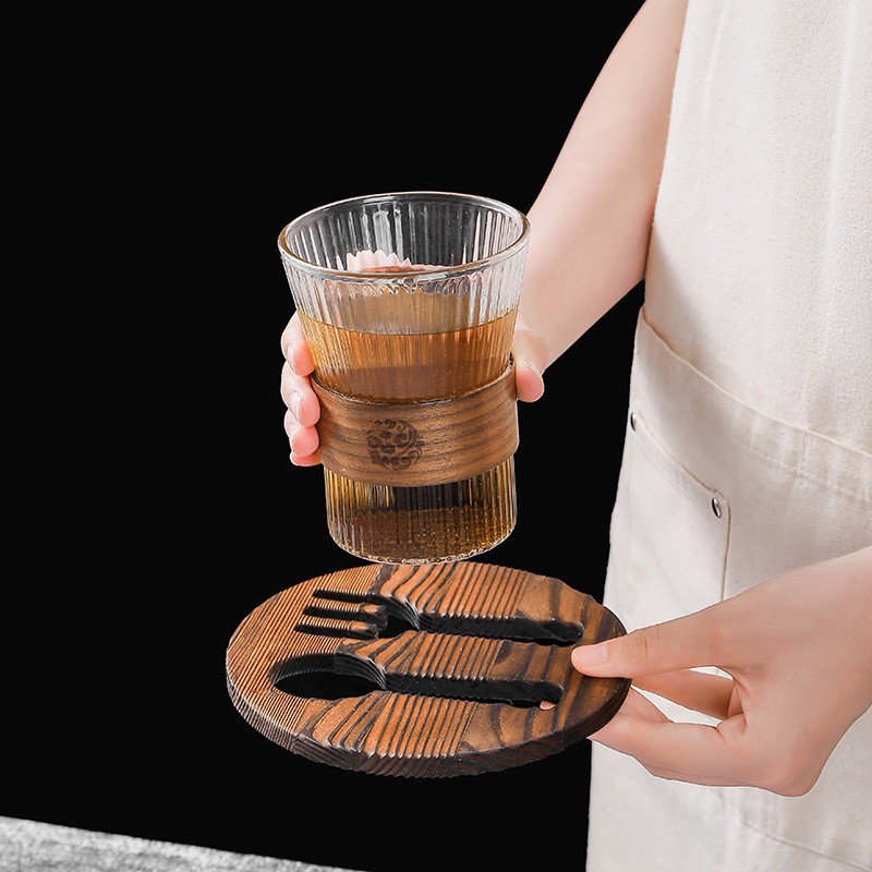소나무 레트로 코스터 커피 매트 단열 매트 나무 새겨진 로고 비 슬립 단열 매트