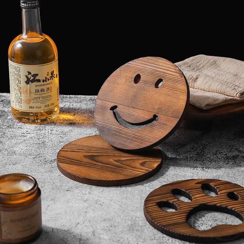 소나무 레트로 코스터 커피 매트 단열 매트 나무 새겨진 로고 비 슬립 단열 매트스토어 가기