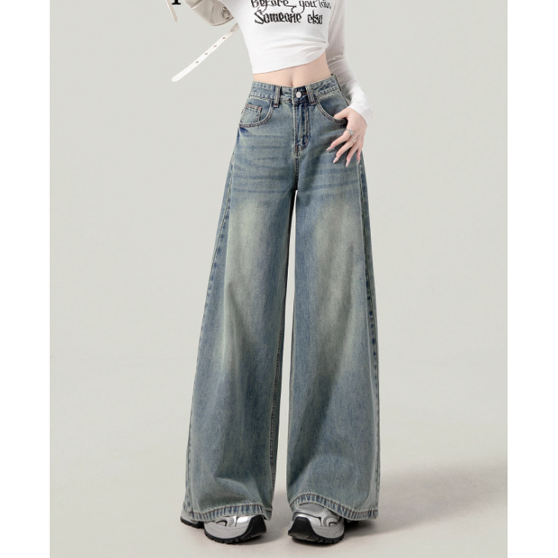 미국 스타일 하이웨이스트 와이드 레그 청바지 여성용 가을 겨울 신상 루즈핏 디자인 다용도 대형 와이드 팬츠스토어 가기