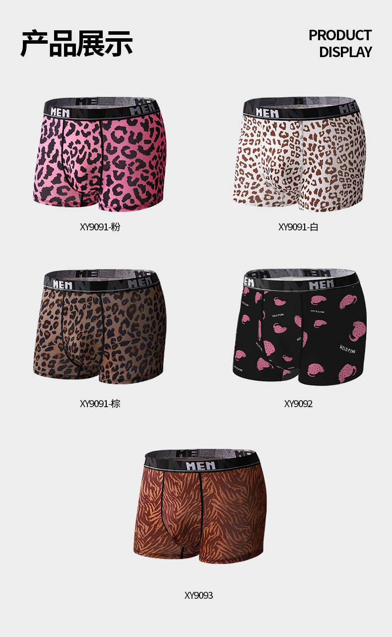 남성용 속옷 대형 사이즈 레오파드 프린트 통기성 중간 허리 얇은 스타일 미국 사이즈 사각팬티 아이스 실크 속옷 남성용 대외 무역 도매스토어 가기