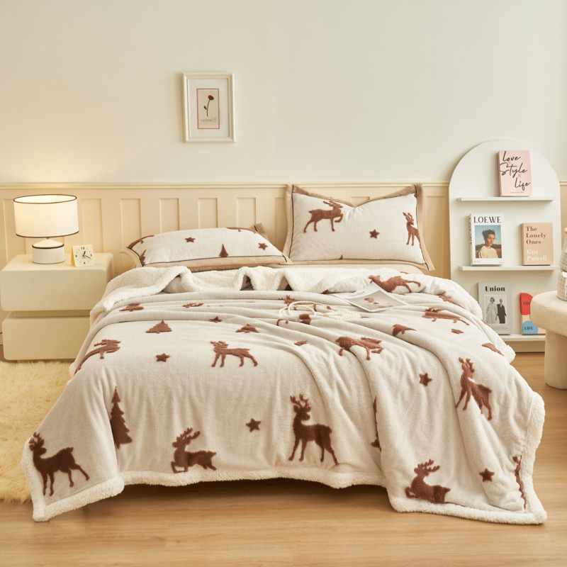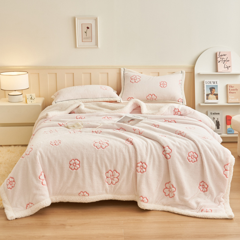 새로운 자카드 우유 양털 담요 두꺼운 양고기 높은 무게 더블 레이어 따뜻한 담요 사무실 점심 식사 담요