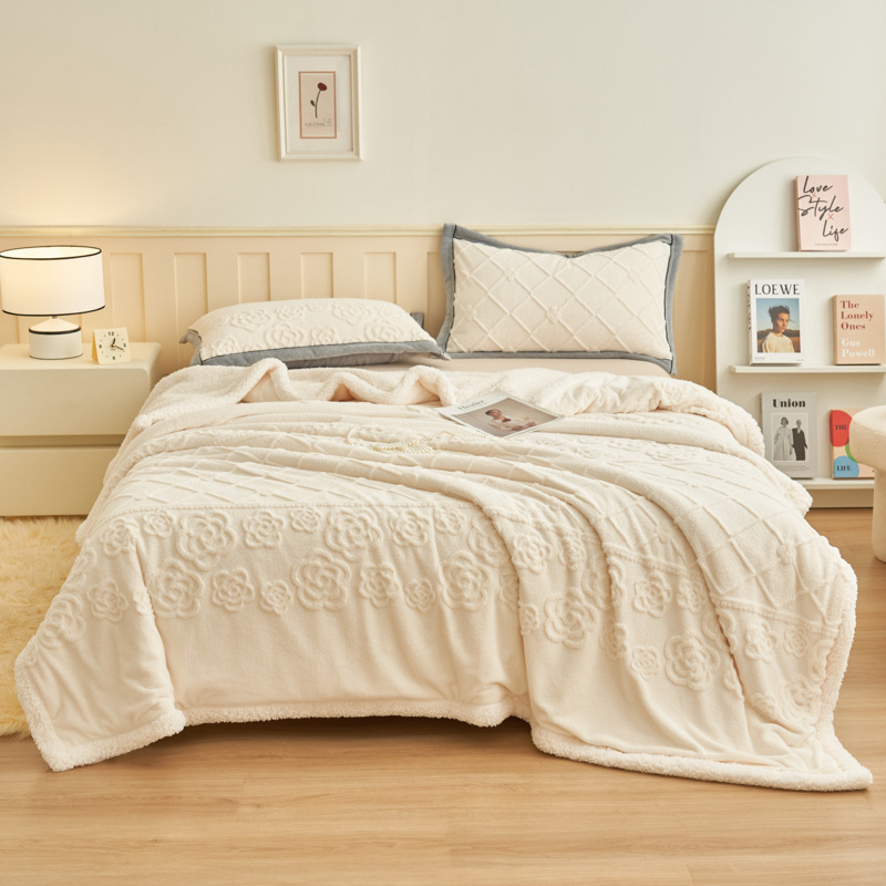 새로운 자카드 우유 양털 담요 두꺼운 양고기 높은 무게 더블 레이어 따뜻한 담요 사무실 점심 식사 담요스토어 가기