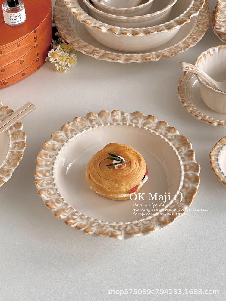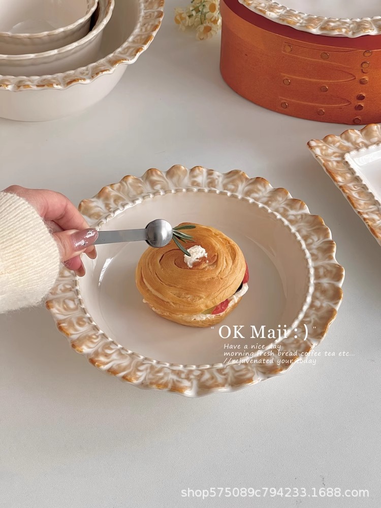 프랑스 복고풍 식기 웨스턴 푸드 플레이트 접시 가정용 고급 세라믹 스퀘어 플레이트 딥 플레이트 피쉬스토어 가기