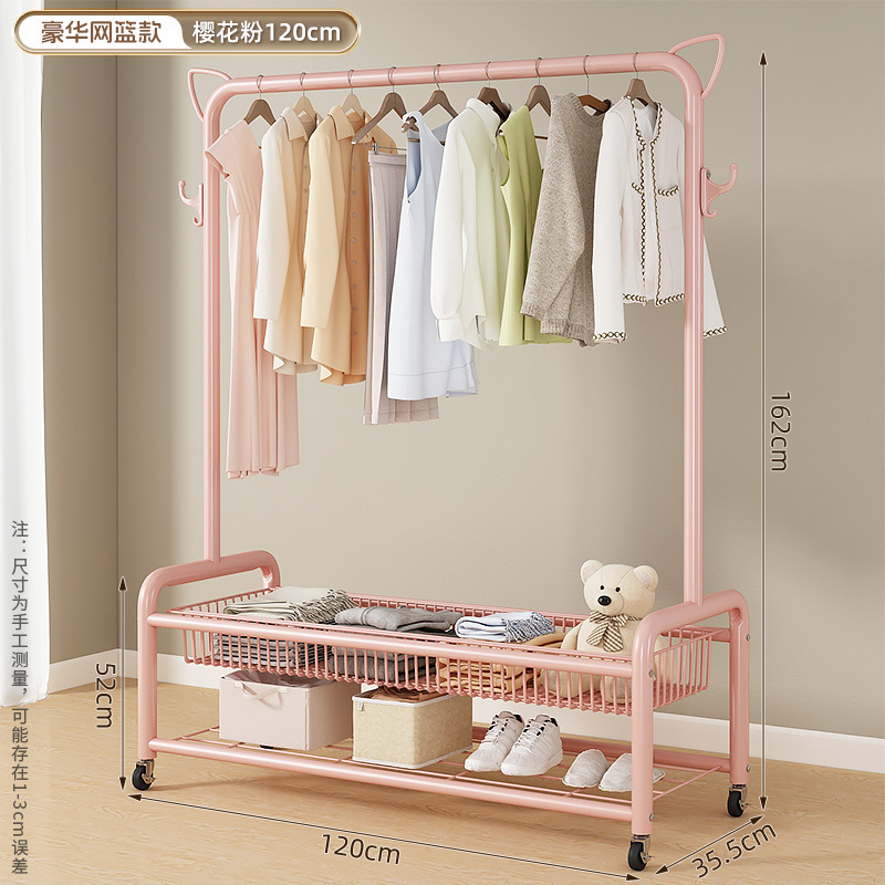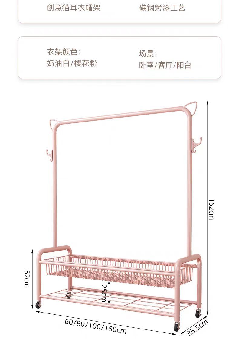소녀를위한 간단한 움직일 수있는 옷 옷걸이 기숙사 사랑스러운 고양이 귀 옷 침실을위한 건조 랙 다기능 보관 옷 랙스토어 가기