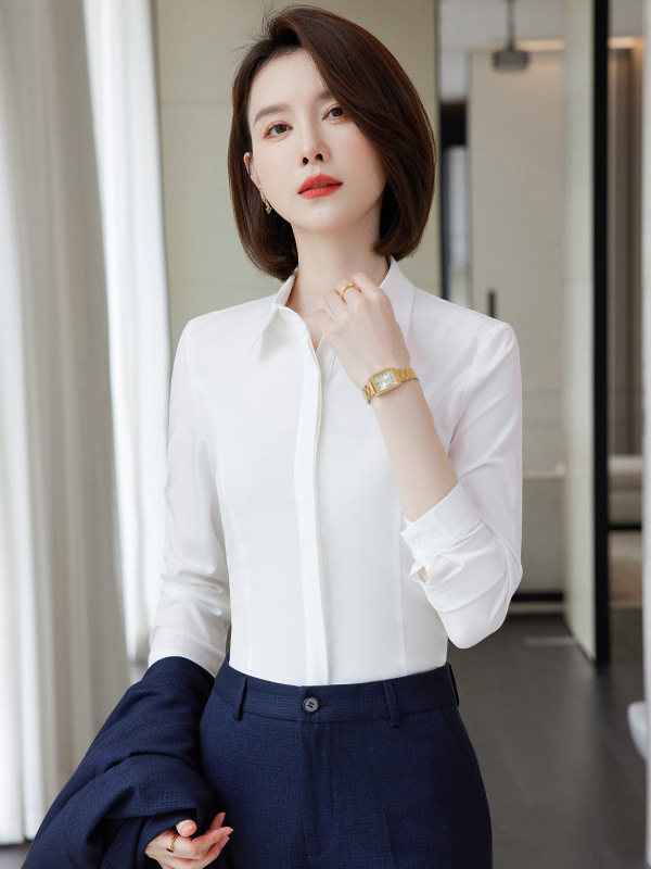 전문 요새 화이트 셔츠 여성용 긴팔 최고 봄과 가을 2024 기질 슬림핏 인터뷰 드레스 화이트 셔츠 작업 옷