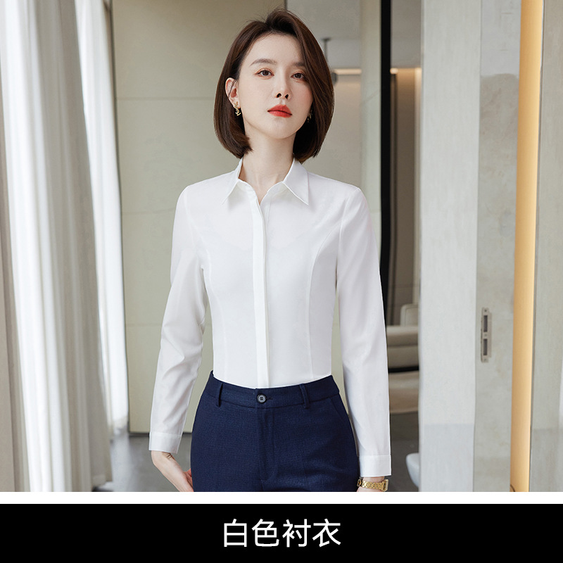 전문 요새 화이트 셔츠 여성용 긴팔 최고 봄과 가을 2024 기질 슬림핏 인터뷰 드레스 화이트 셔츠 작업 옷스토어 가기