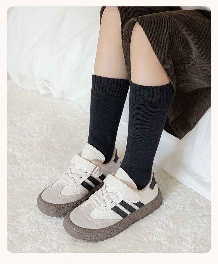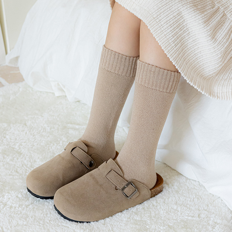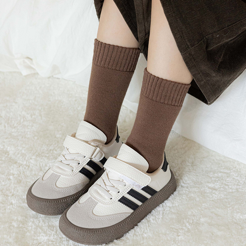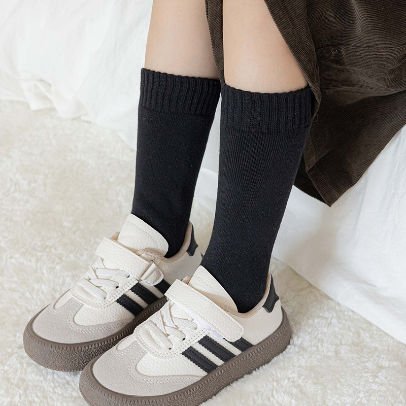 어린이 양말 가을과 겨울 튜브 양말 소녀 단색 올 매치 파일 양말 소년 기모 두꺼운 따뜻한 테리 양말