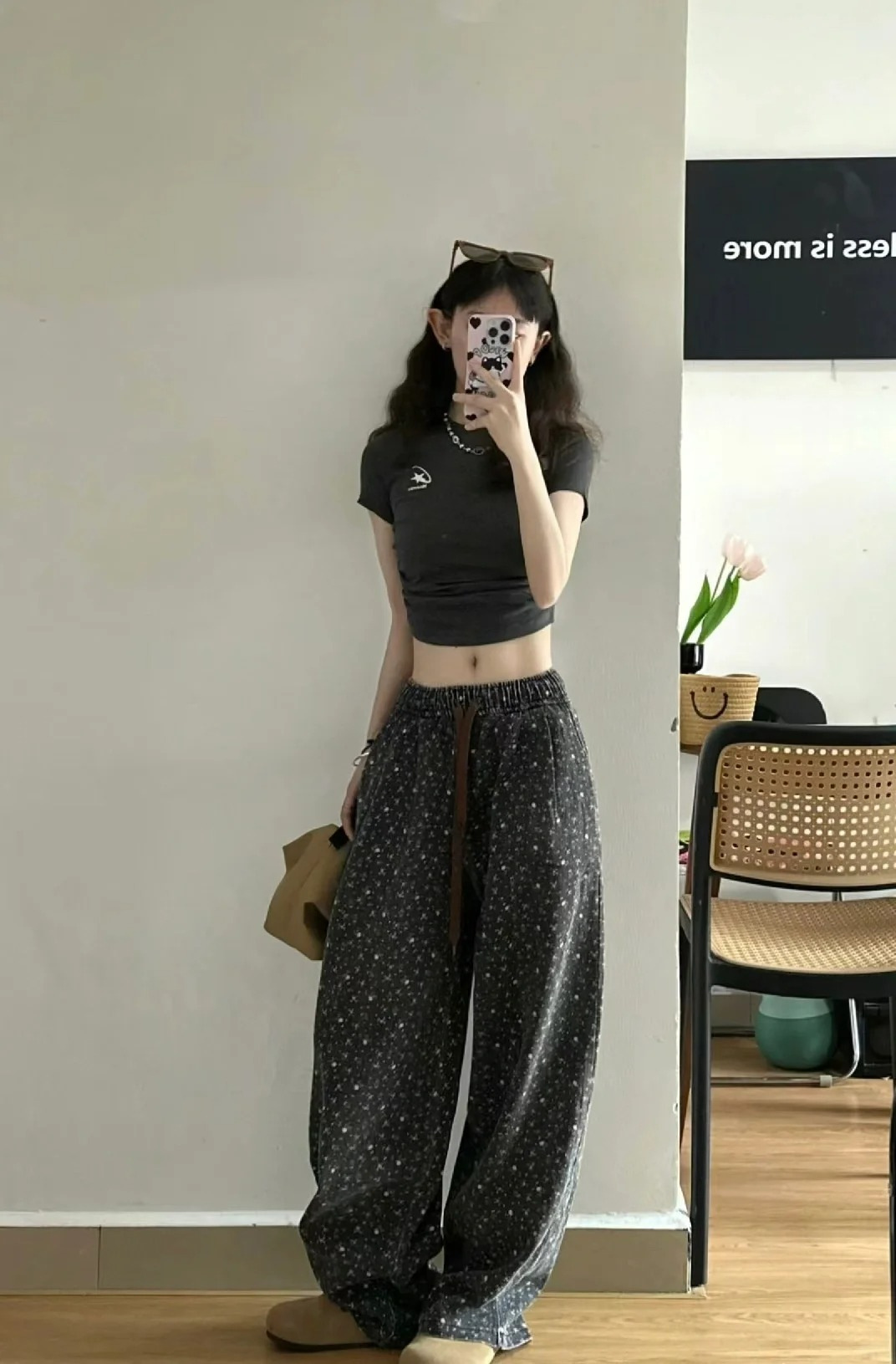 도매 가을 겨울 신상 한국 청바지, 복고풍 꽃무늬 루즈한 와이드 레그, 여성용 다용도 두꺼운 스트레이트 캐주얼 팬츠스토어 가기