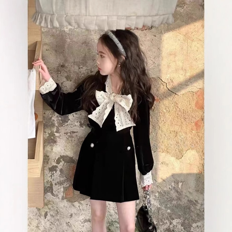소녀 어린이 탑 2024 가을과 겨울 새로운 달콤한 우아한 스트랩 활 긴 소매 셔츠스토어 가기