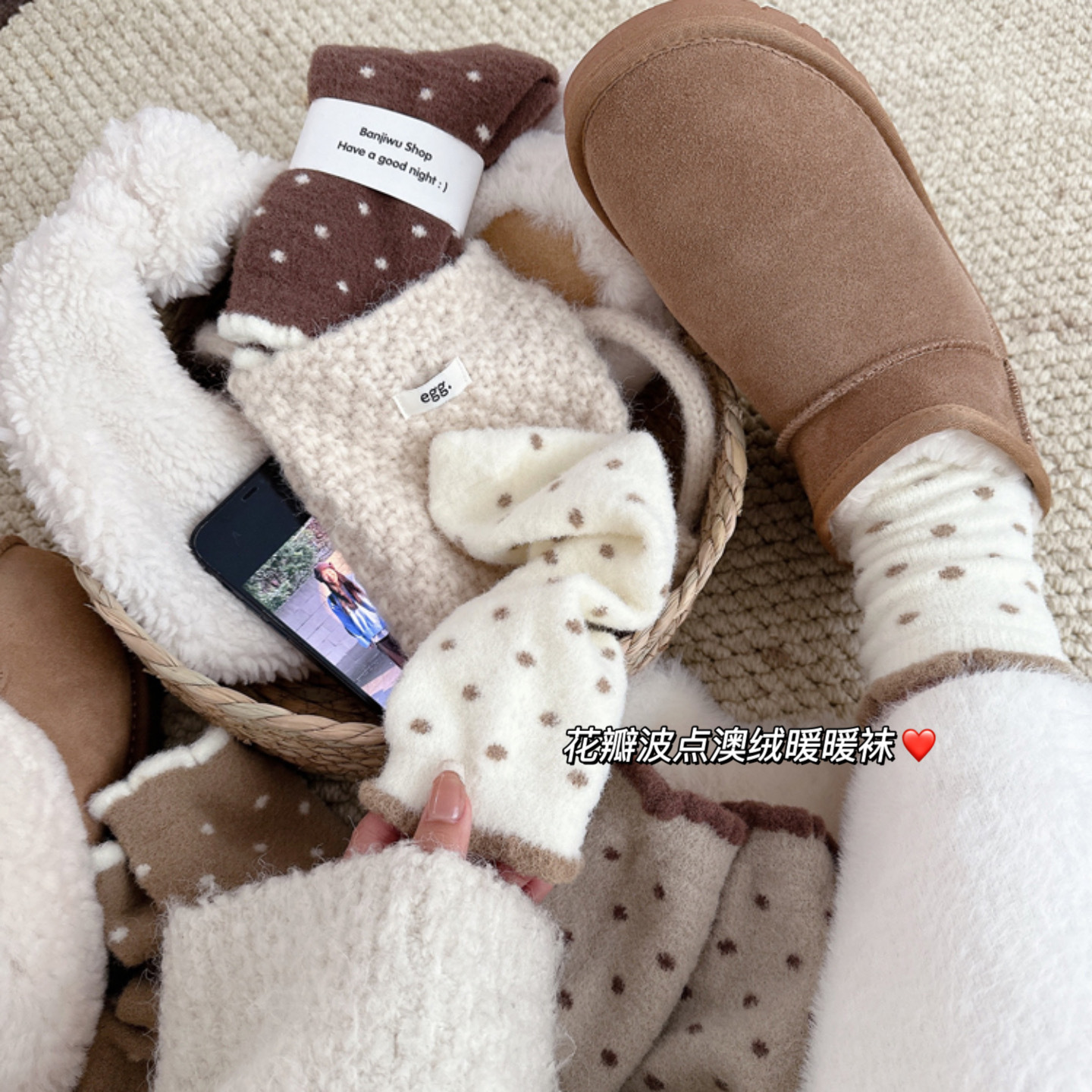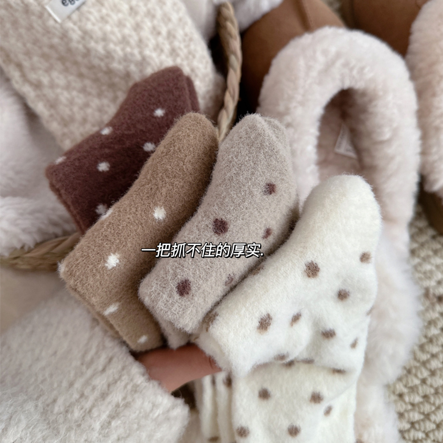 양말 여성 한국 스타일 작은 웨이브 도트 호주 벨벳 양말 여성 미드 튜브 양말 가을과 겨울 두꺼운 따뜻한 일본 스타일 기모 포장 달 양말