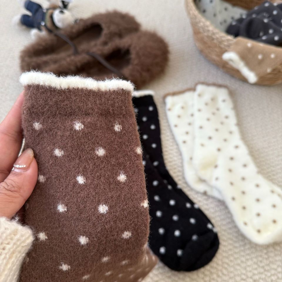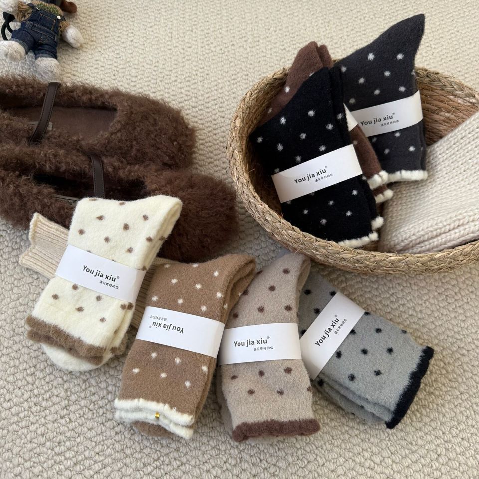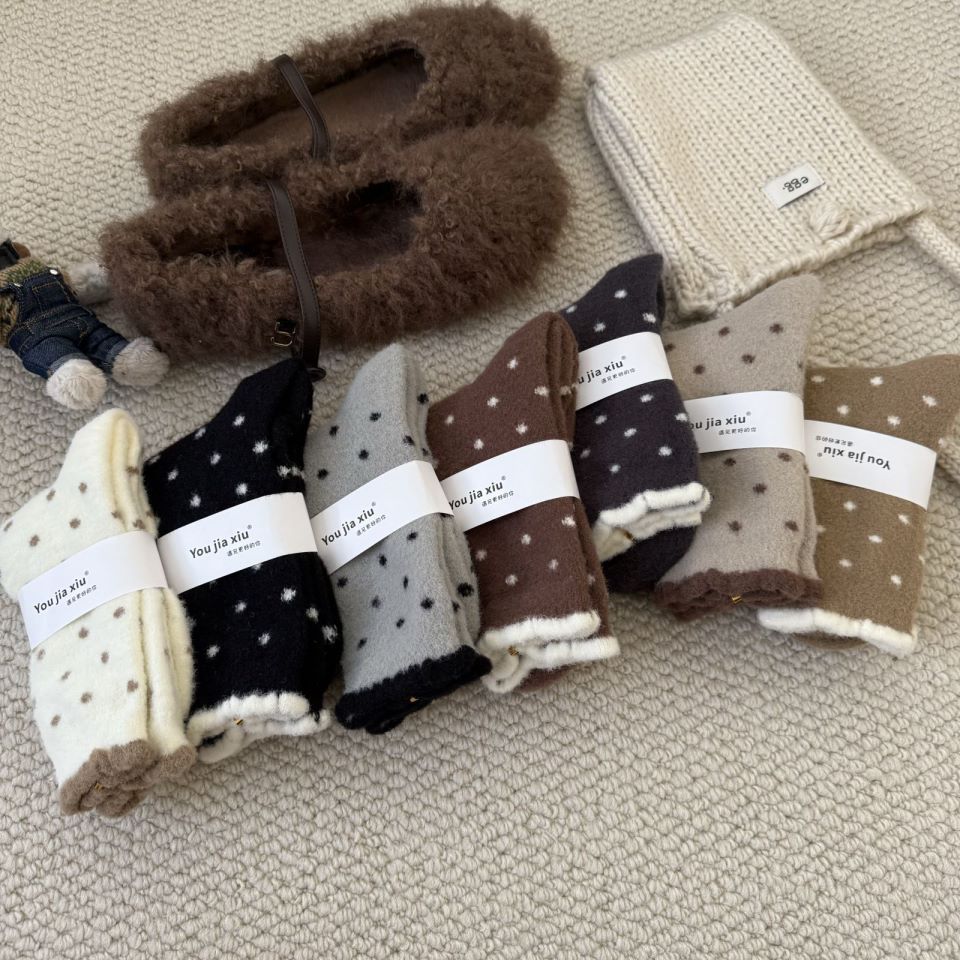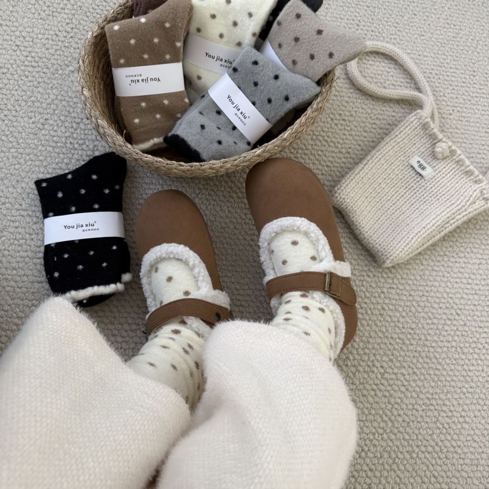 양말 여성 한국 스타일 작은 웨이브 도트 호주 벨벳 양말 여성 미드 튜브 양말 가을과 겨울 두꺼운 따뜻한 일본 스타일 기모 포장 달 양말스토어 가기