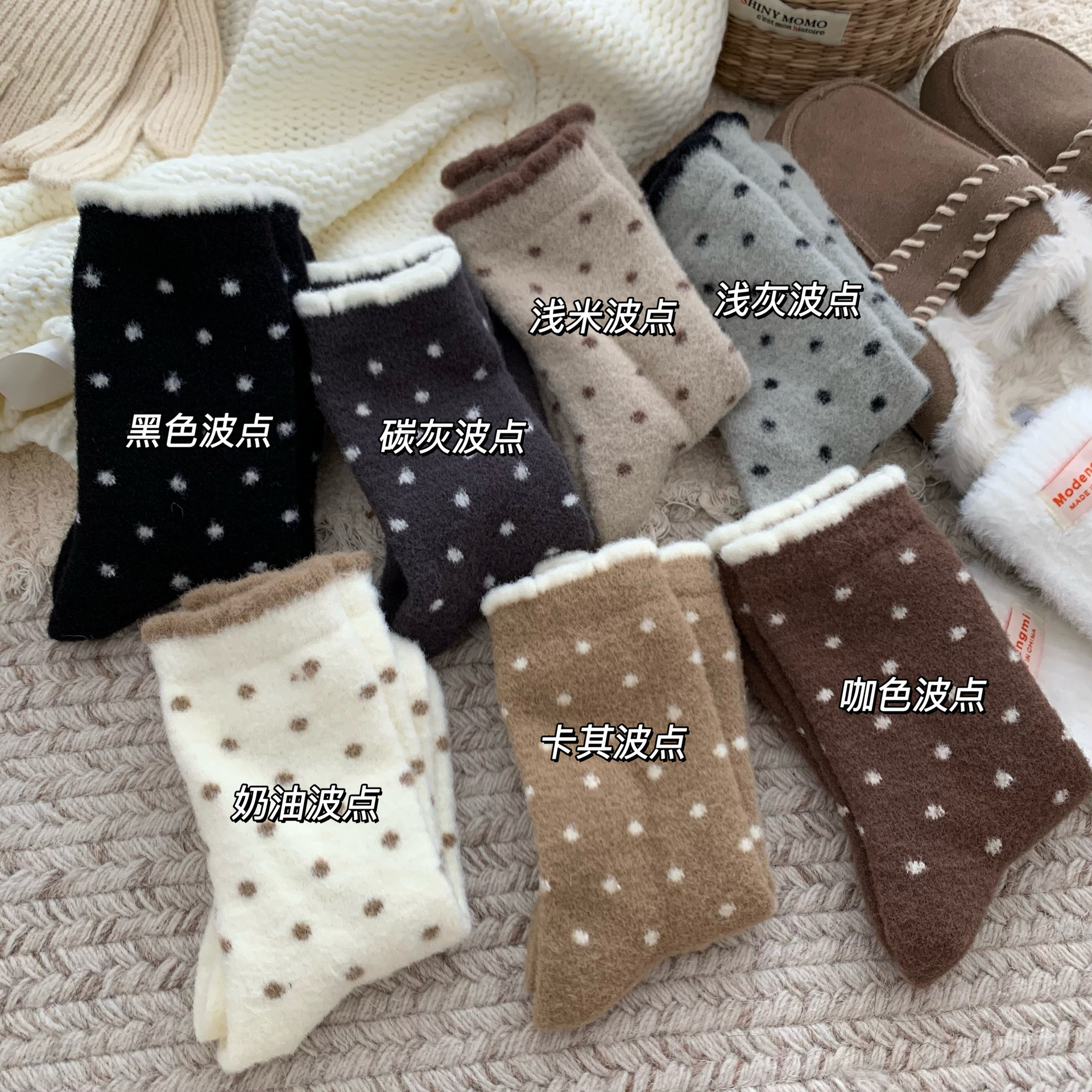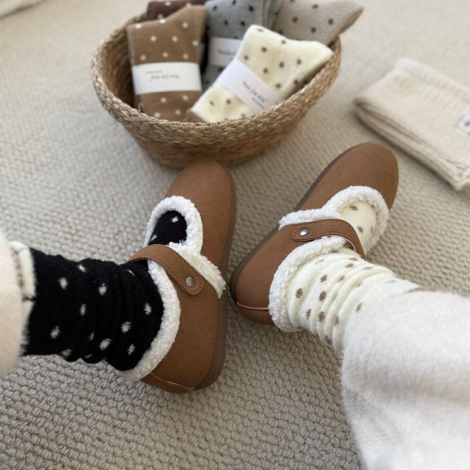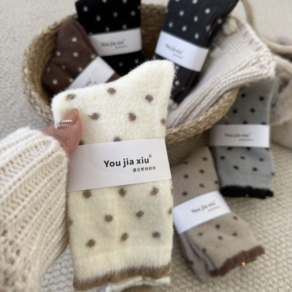 양말 여성 한국 스타일 작은 웨이브 도트 호주 벨벳 양말 여성 미드 튜브 양말 가을과 겨울 두꺼운 따뜻한 일본 스타일 기모 포장 달 양말스토어 가기