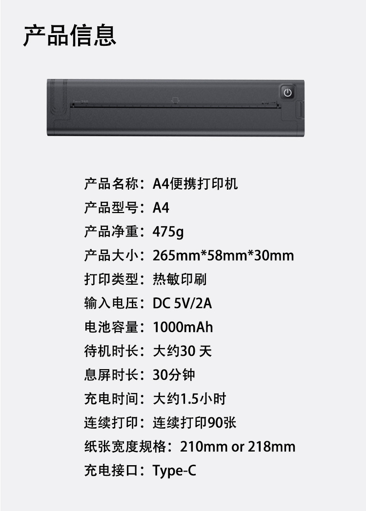 국경 A4 열 프린터 잉크 무료 작은 미니 휴대용 블루투스 잘못된 주제 학생 숙제 사진 사무실 라벨스토어 가기