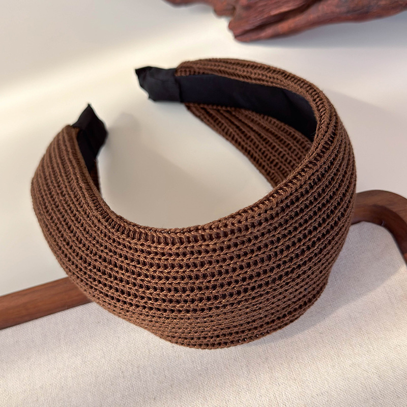 Yi Mengling 같은 스타일 레트로 솔리드 컬러 울 니트 와이드 브레드 헤드 밴드 올 매치 우아한 간단한 인터넷-여성을위한 헤어 후프