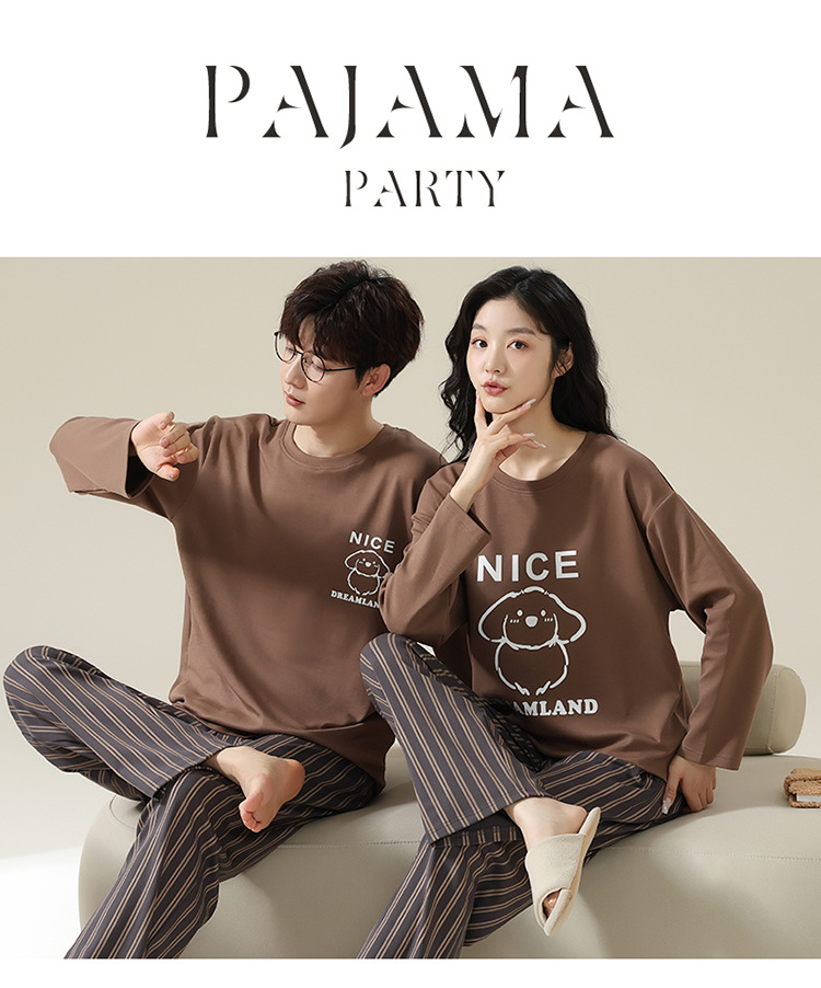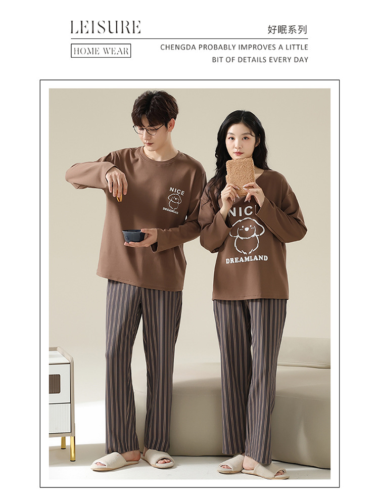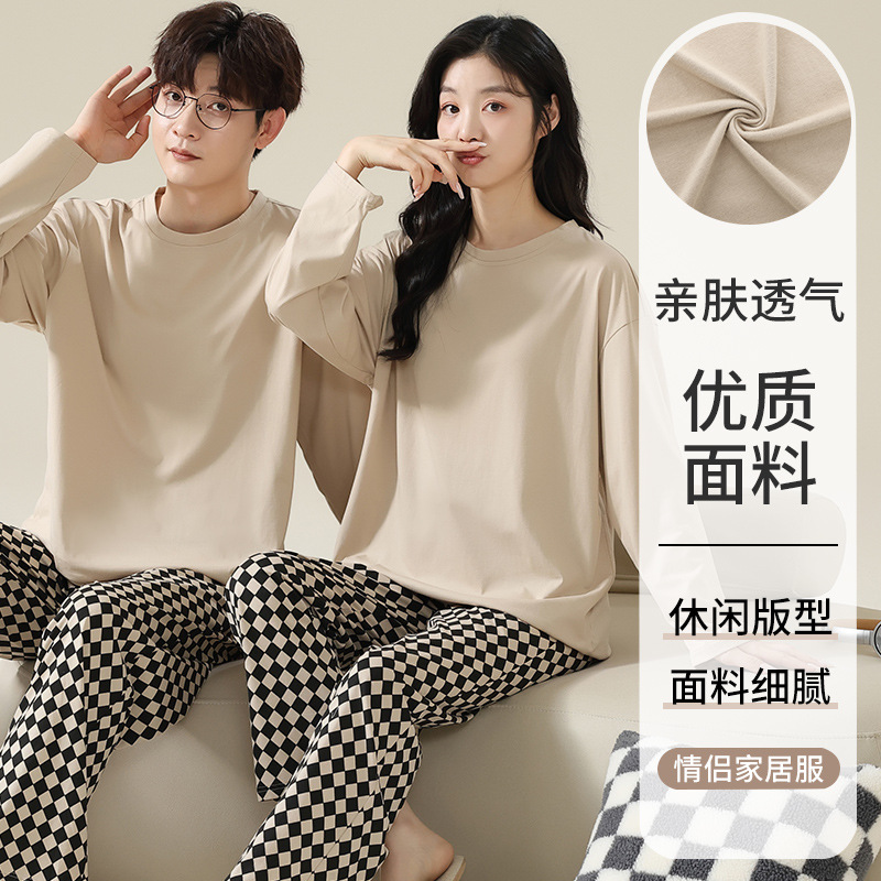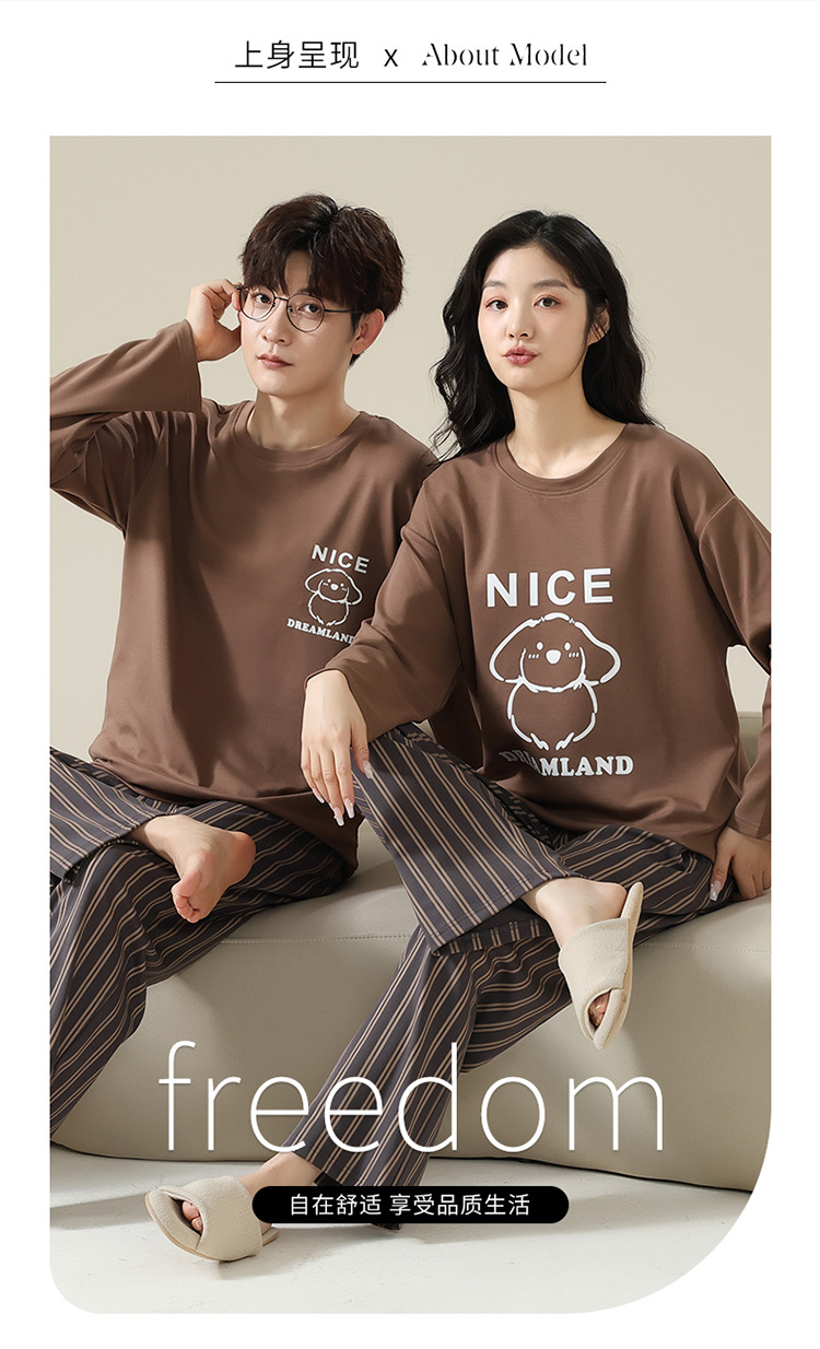 2025 봄 신상 커플 잠옷【여성용 가슴 패드 포함】봄 가을용 면 긴팔 긴바지 캐주얼하고 편안한 남성용