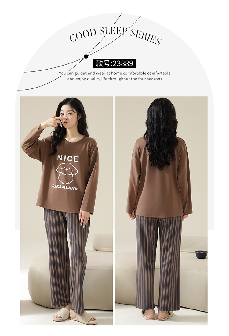 2025 봄 신상 커플 잠옷【여성용 가슴 패드 포함】봄 가을용 면 긴팔 긴바지 캐주얼하고 편안한 남성용스토어 가기