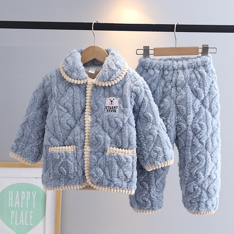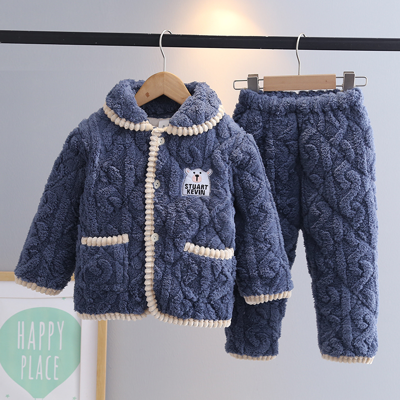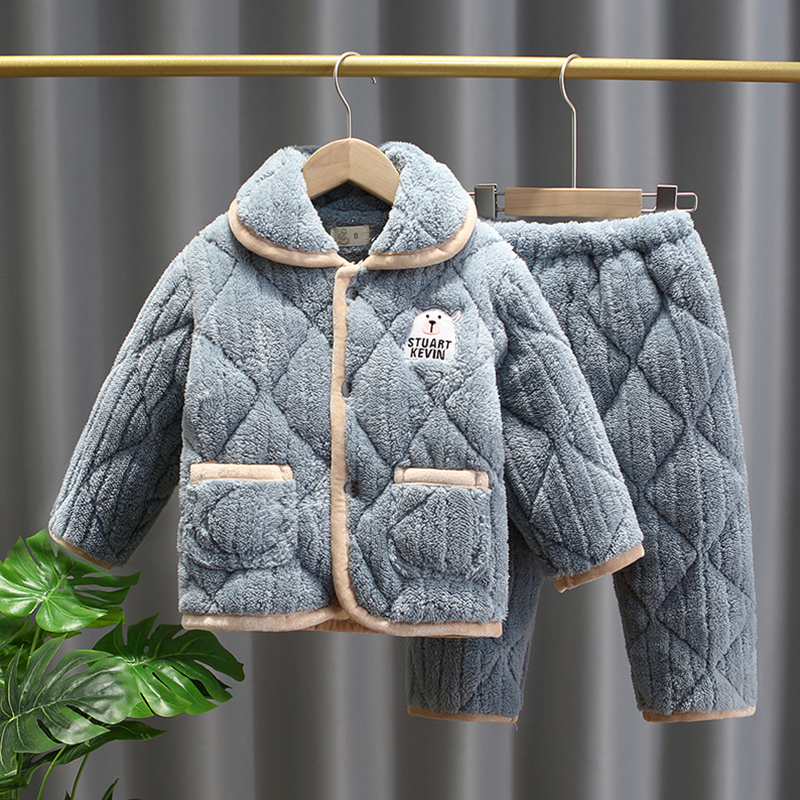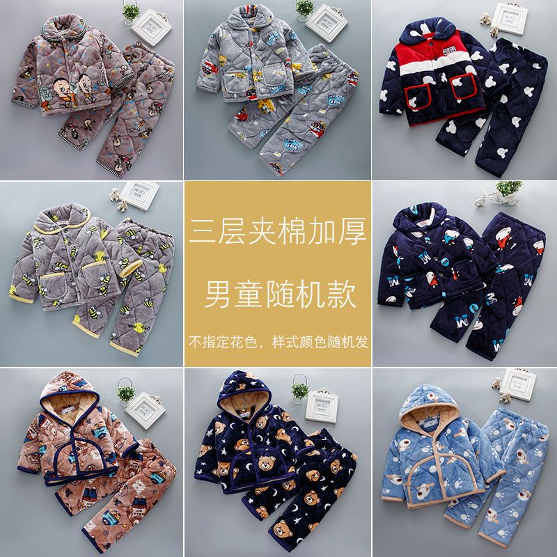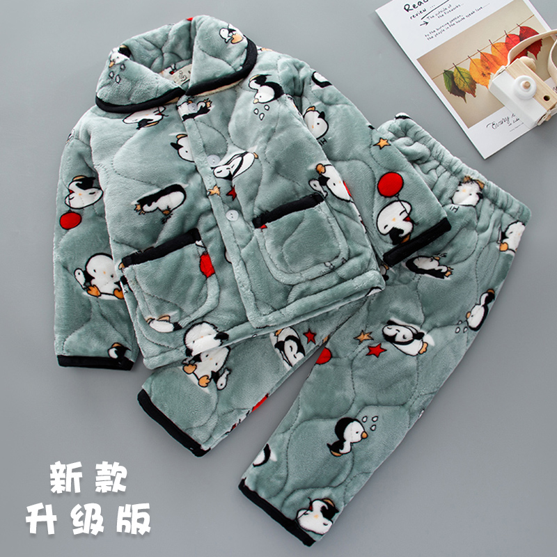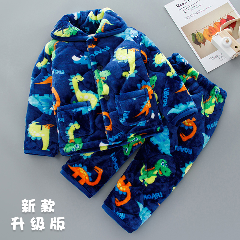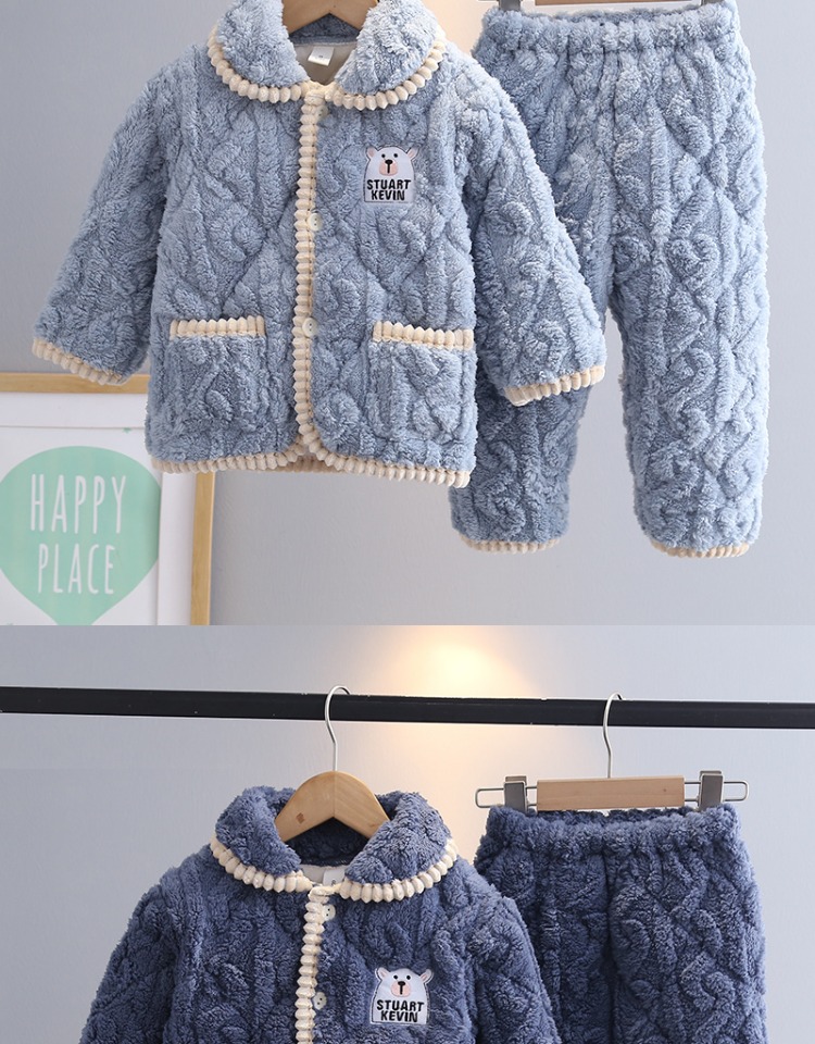 가을과 겨울 어린이 플란넬 파자마 3 층 두꺼운 코튼 퀼트 소년 아기 코랄 양털 홈 의류 세트