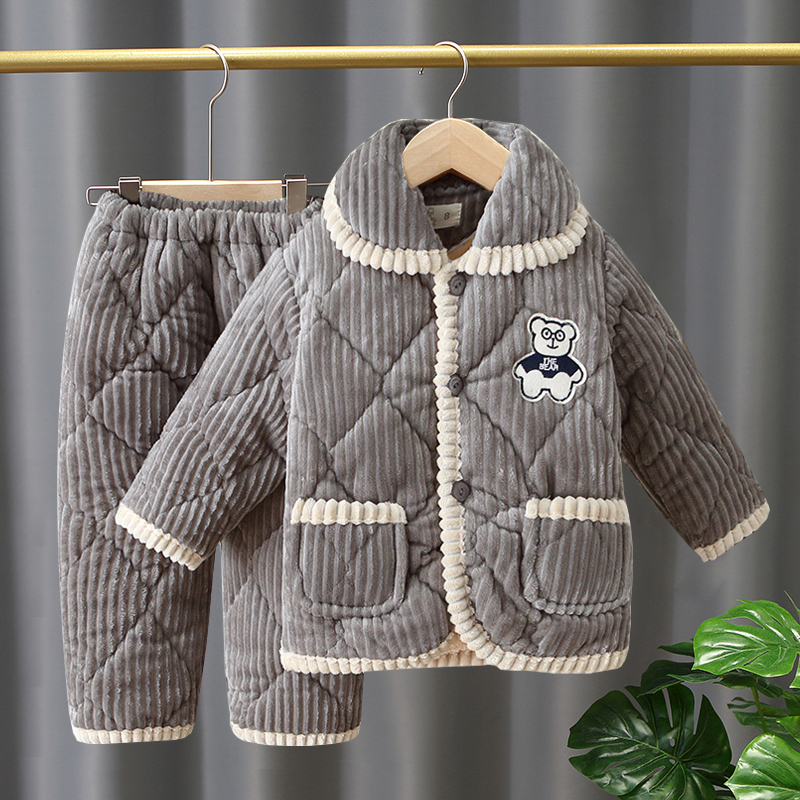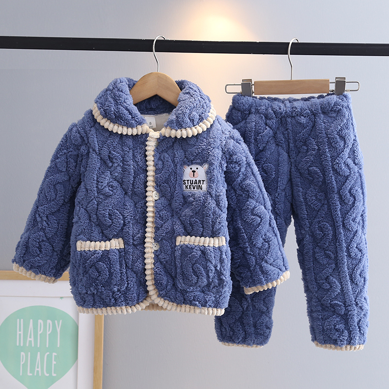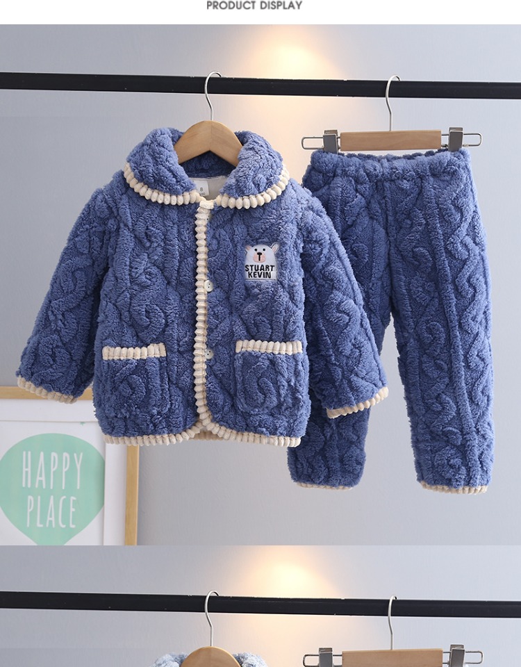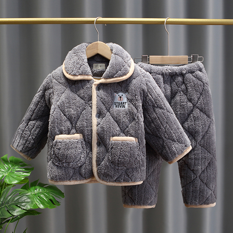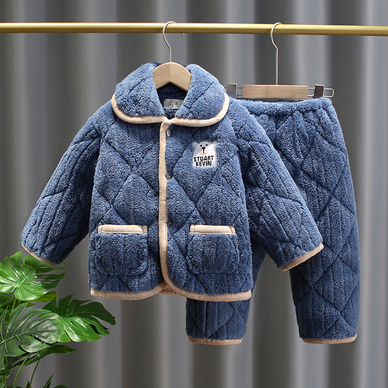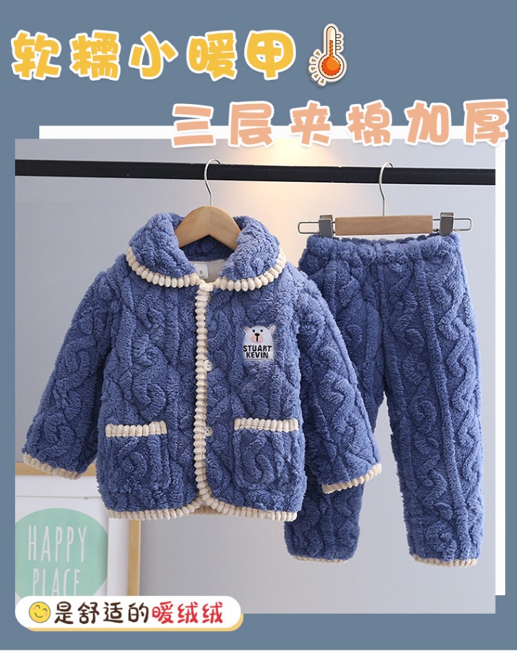 가을과 겨울 어린이 플란넬 파자마 3 층 두꺼운 코튼 퀼트 소년 아기 코랄 양털 홈 의류 세트