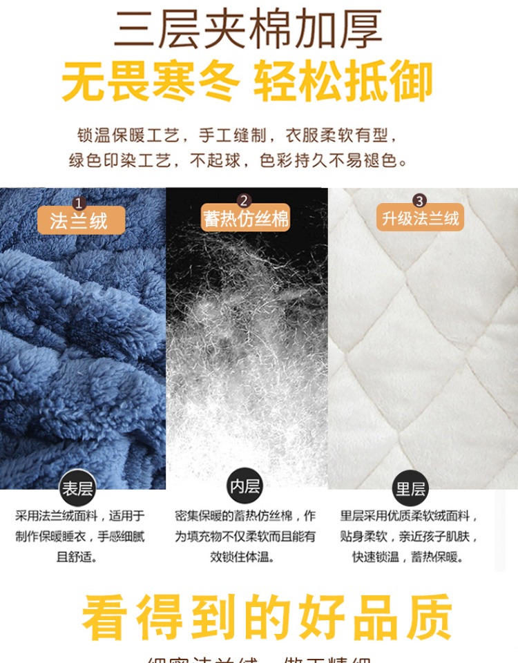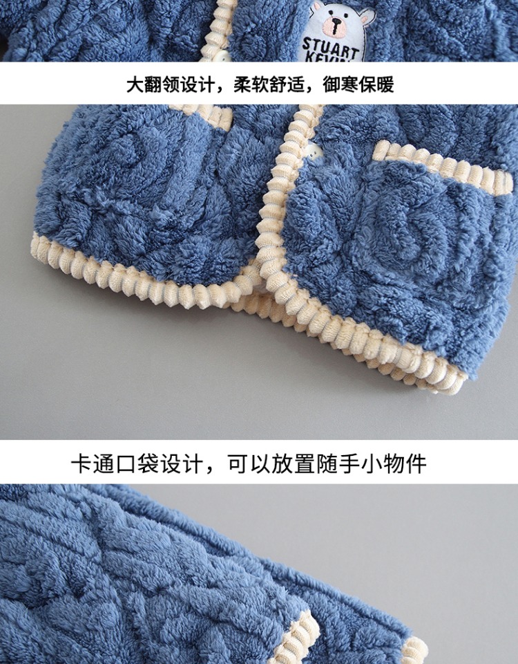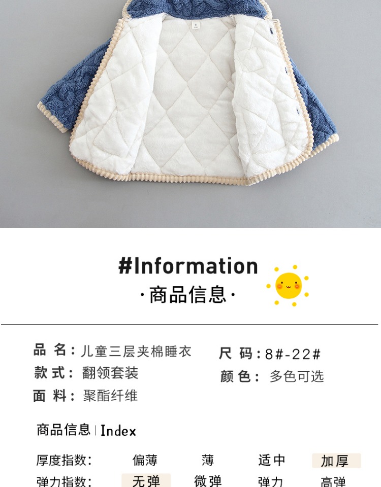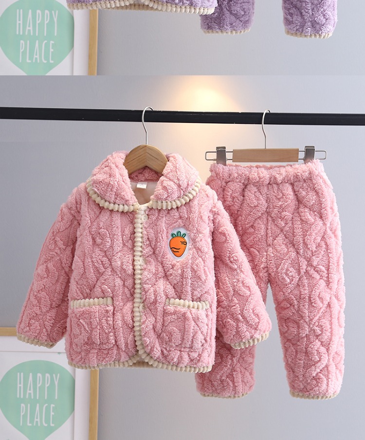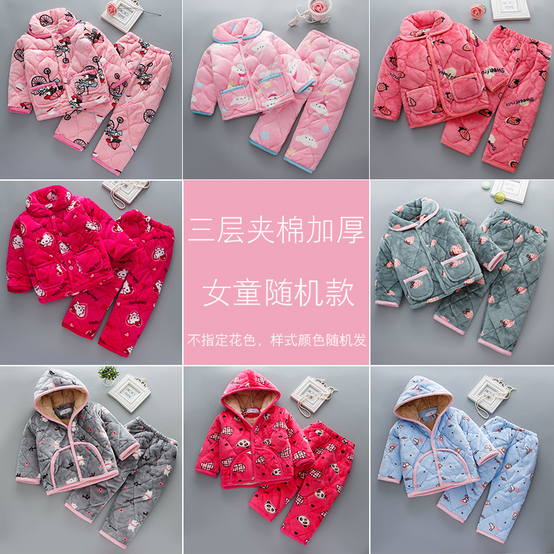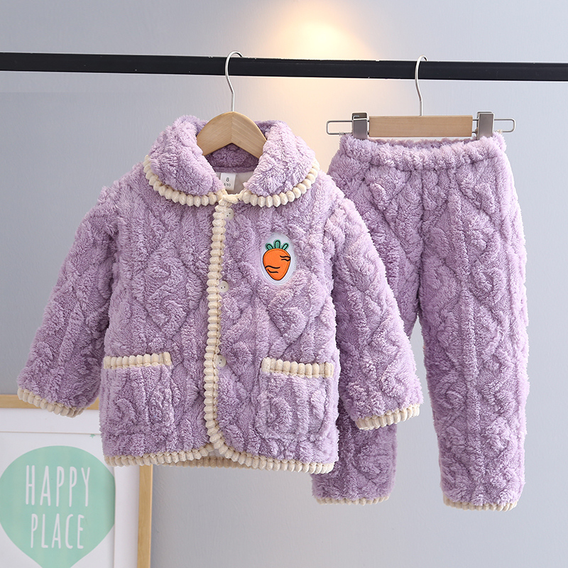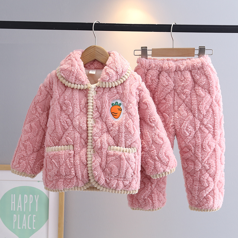 가을과 겨울 어린이 플란넬 파자마 3 층 두꺼운 코튼 퀼트 소년 아기 코랄 양털 홈 의류 세트
