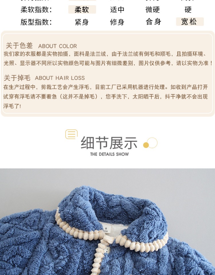 가을과 겨울 어린이 플란넬 파자마 3 층 두꺼운 코튼 퀼트 소년 아기 코랄 양털 홈 의류 세트스토어 가기
