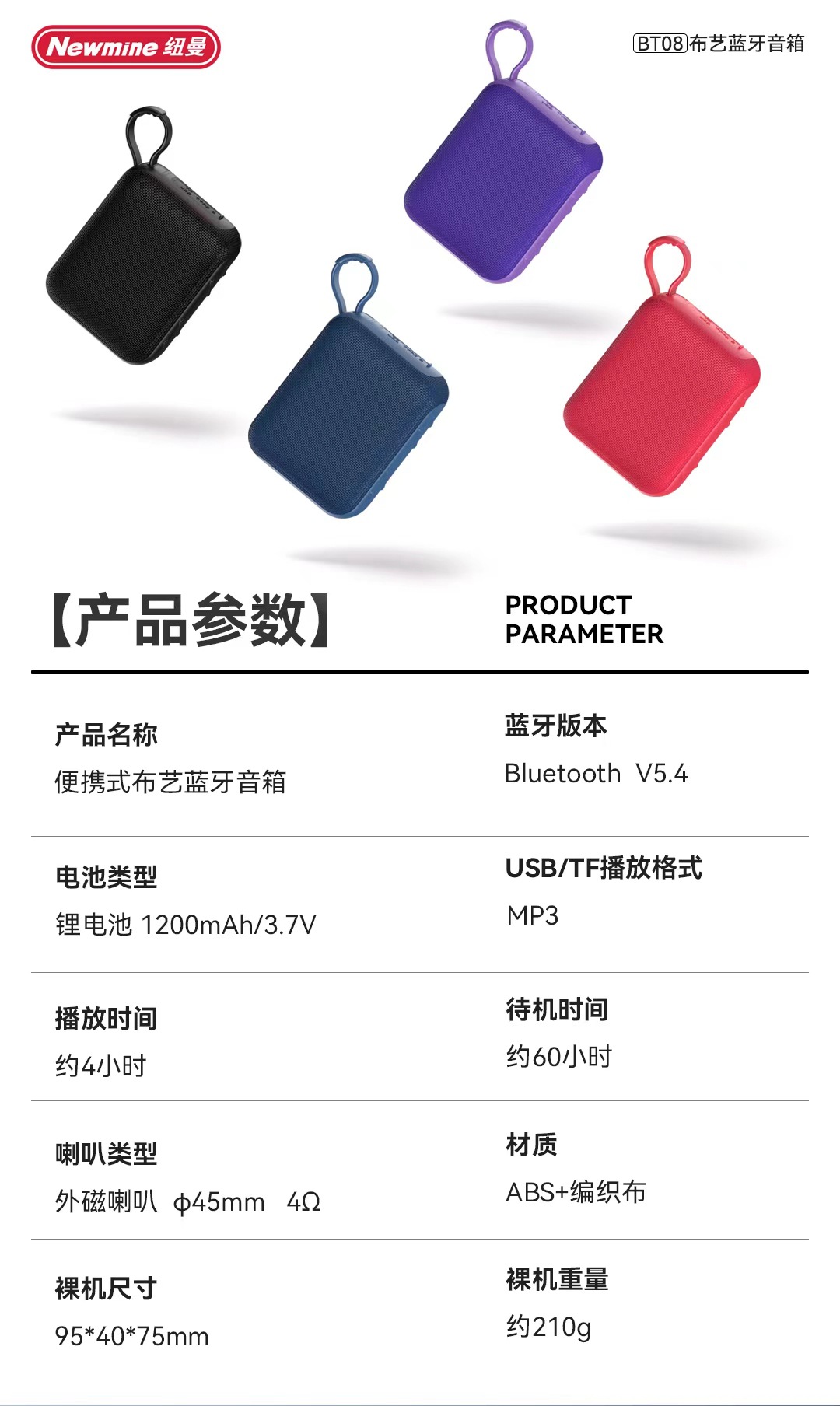 큰 볼륨 서브 우퍼가있는 Newman BT08 미니 블루투스 스피커는 TF 카드에 삽입 할 수 있으며 U 디스크는 3.5mm 에 연결할 수 있습니다.