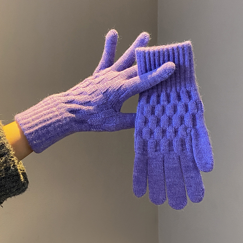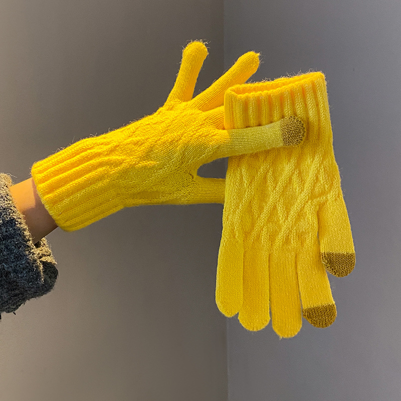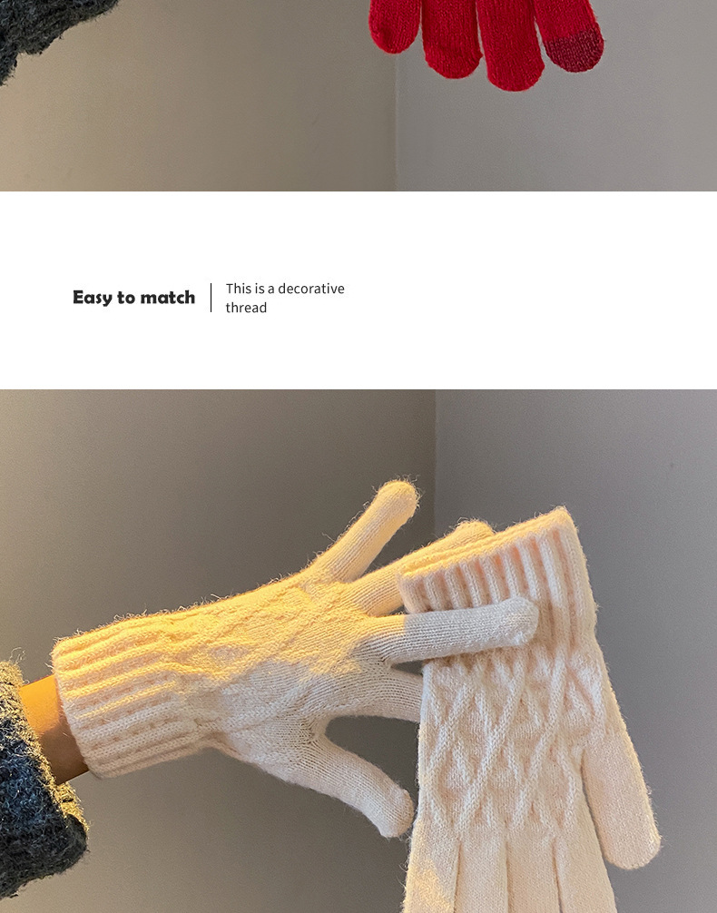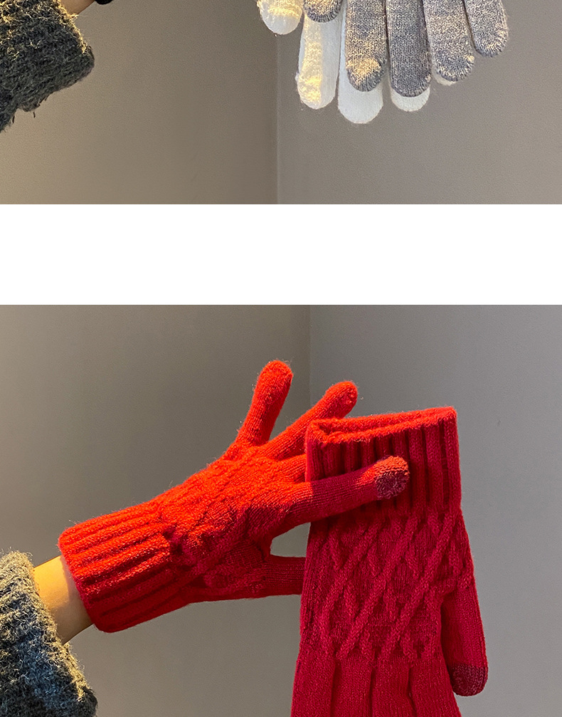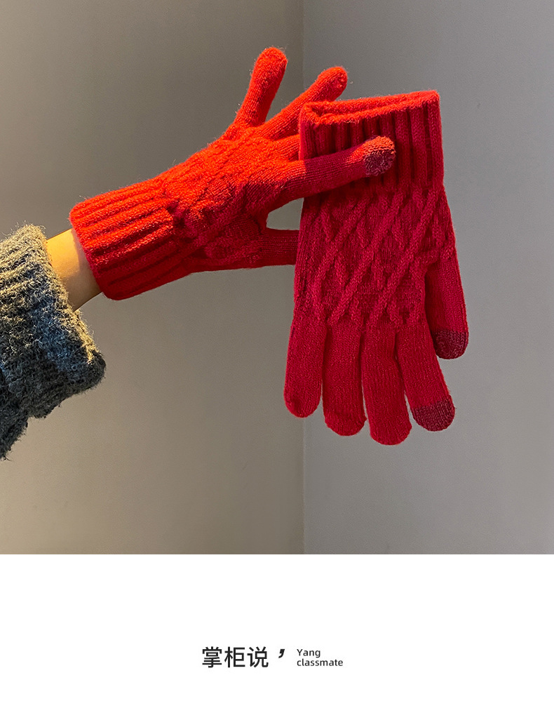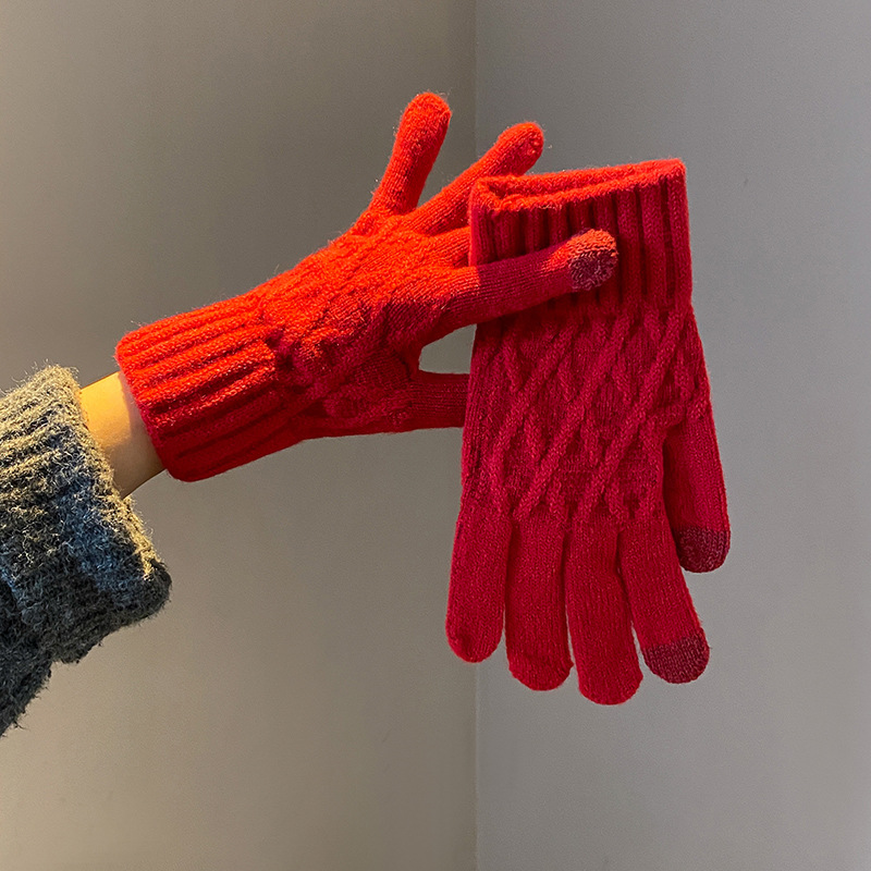 한국 안코라 붉은 양모 니트 장갑 여성의 높은 탄력 겨울 5 손가락 터치스크린 따뜻한 장갑