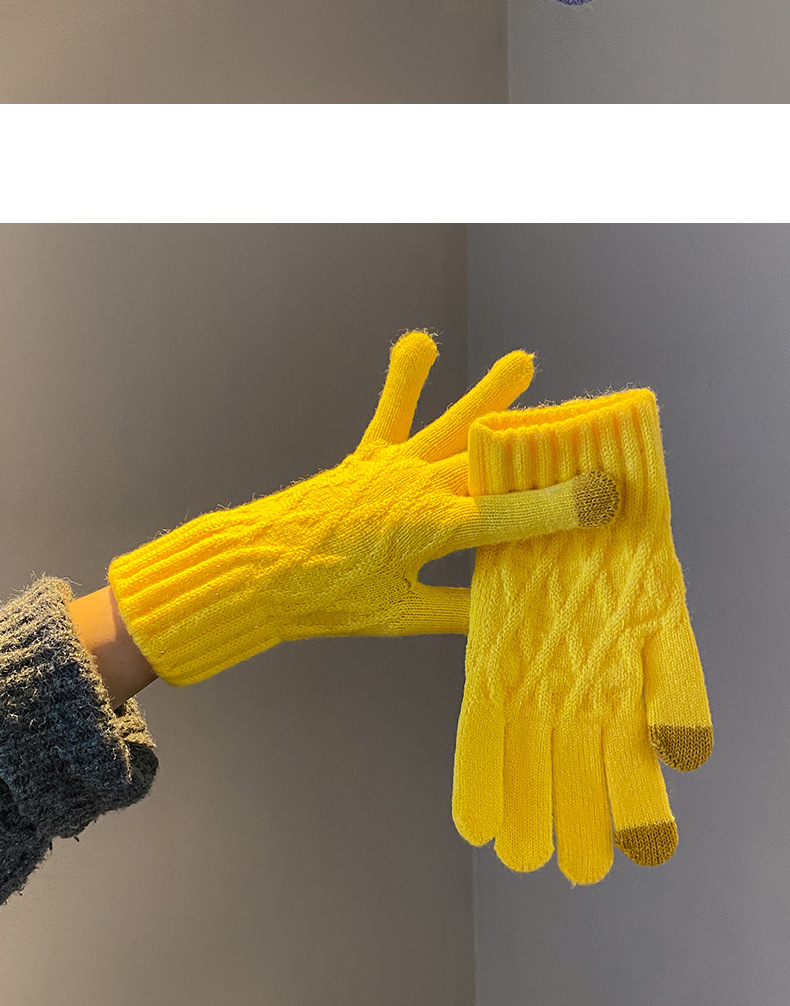 한국 안코라 붉은 양모 니트 장갑 여성의 높은 탄력 겨울 5 손가락 터치스크린 따뜻한 장갑스토어 가기