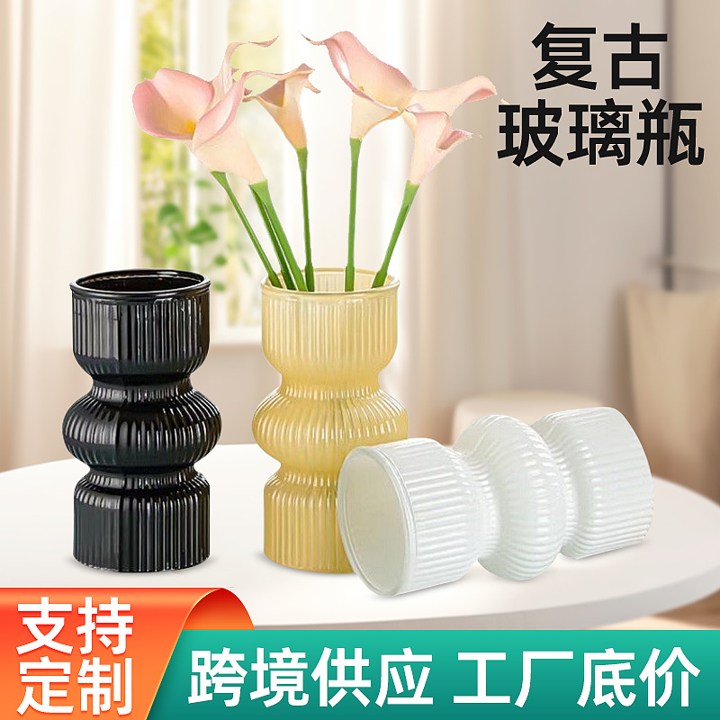 프랑스풍 니치 레트로 컬러 유리 꽃병 인스 스타일 홈 거실 장식 수경 꽃꽂이 장식품 도매스토어 가기