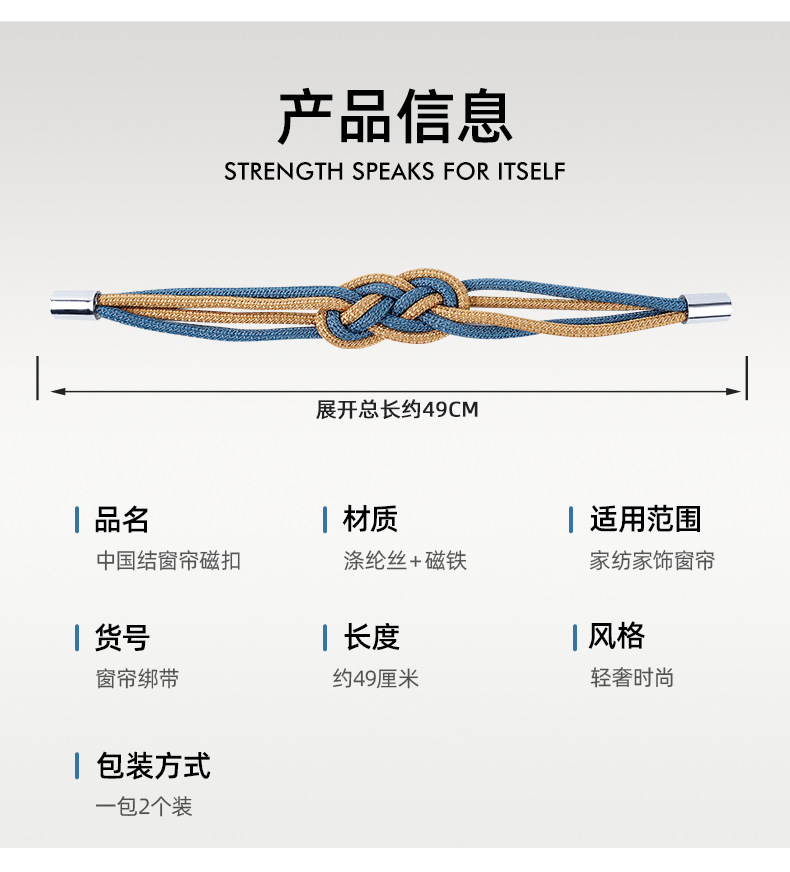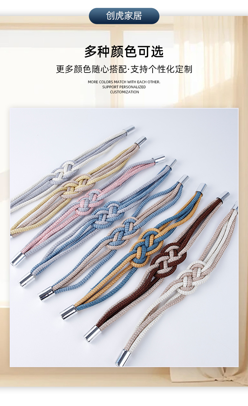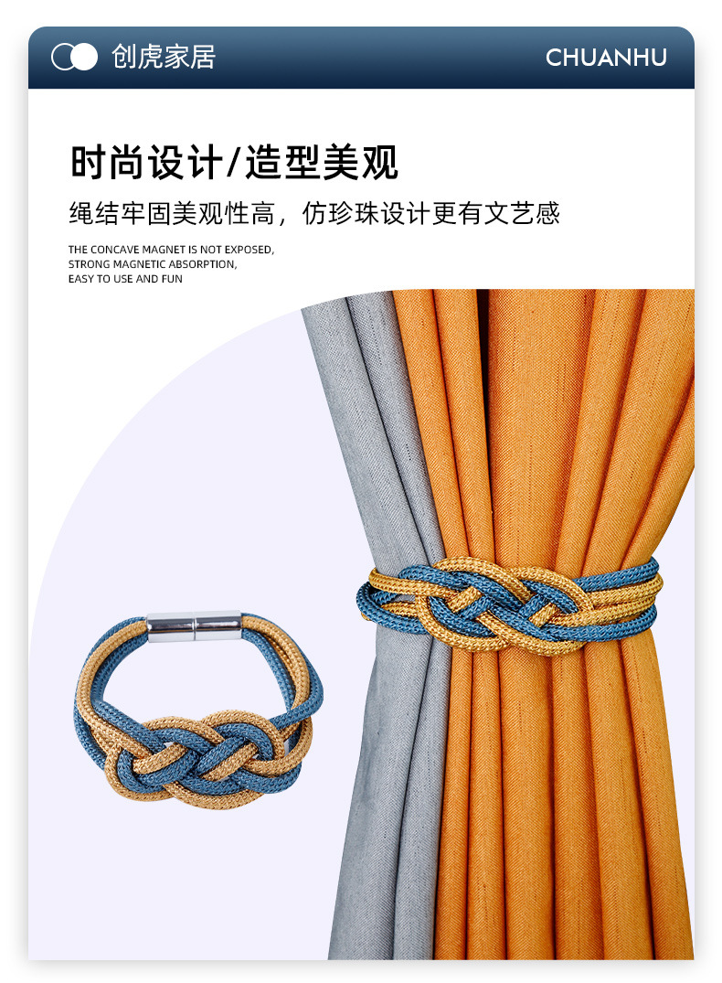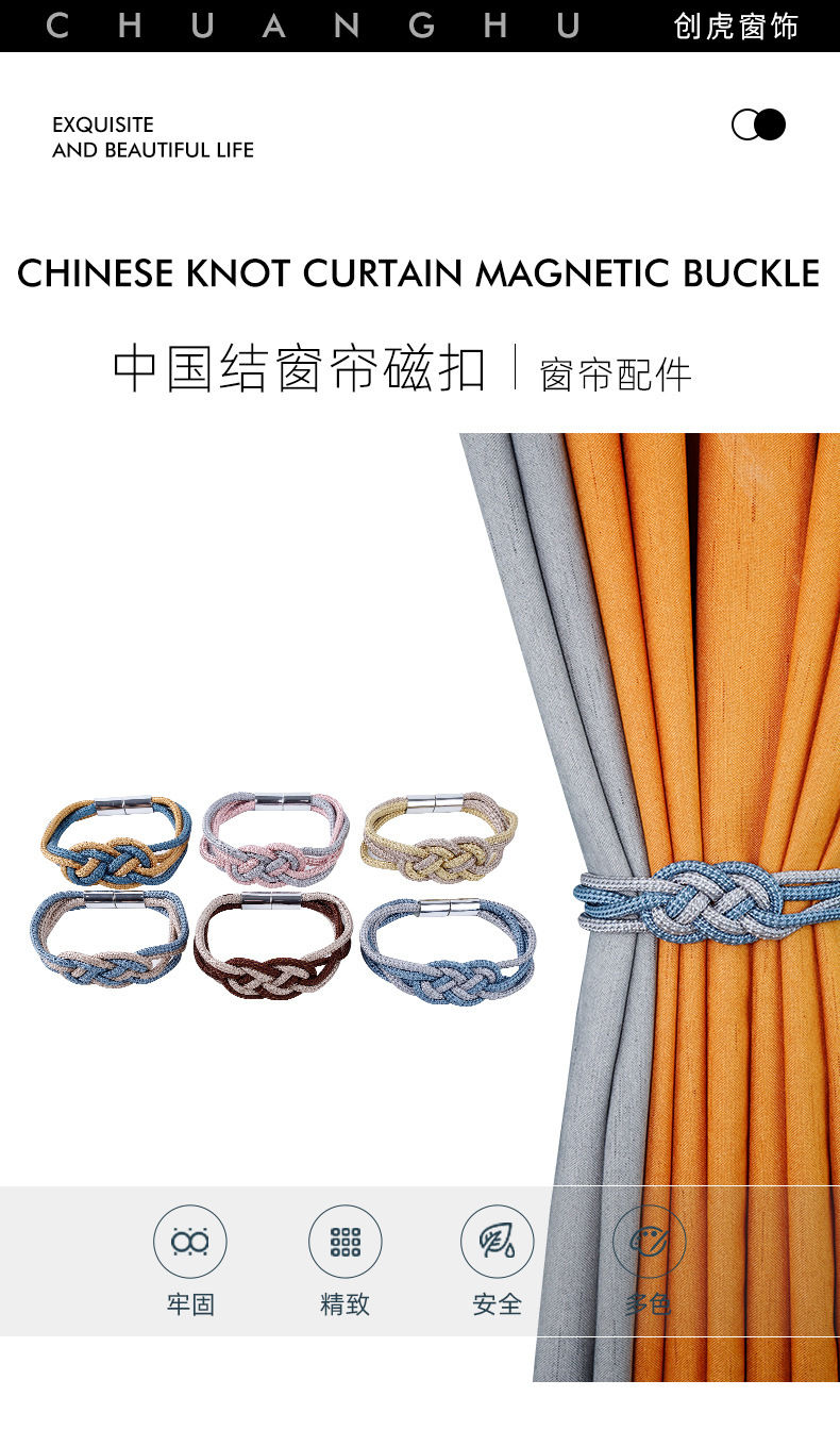 새로운 현대 간단한 중국어 매듭 커튼 스트랩, 펀칭 및 설치가 필요 없음, 국경 커튼 마그네틱 버클 커튼 스트랩